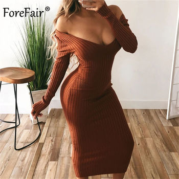 Ribbed Dress Knit Long Sleeve V Neck Bodycon OUT0877