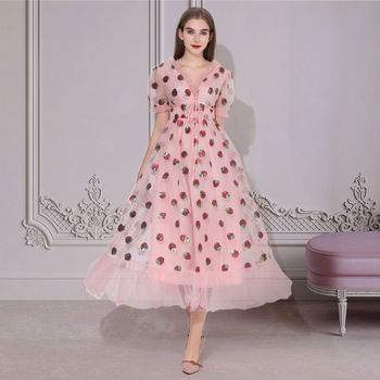 2021 Summer Vintage Maxi Dress Mesh OUT0804
