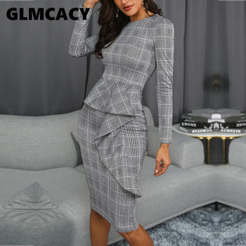 Plaid Print Ruffle Trim Midi Dress Office Autumn Outfit Dress