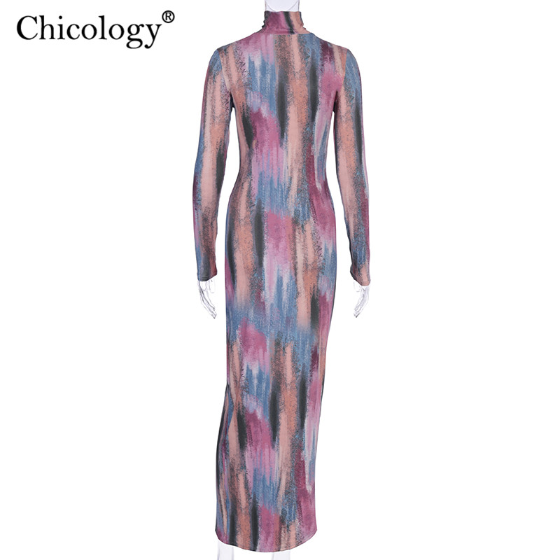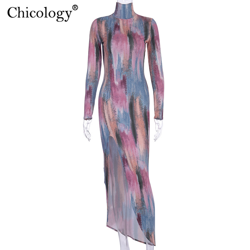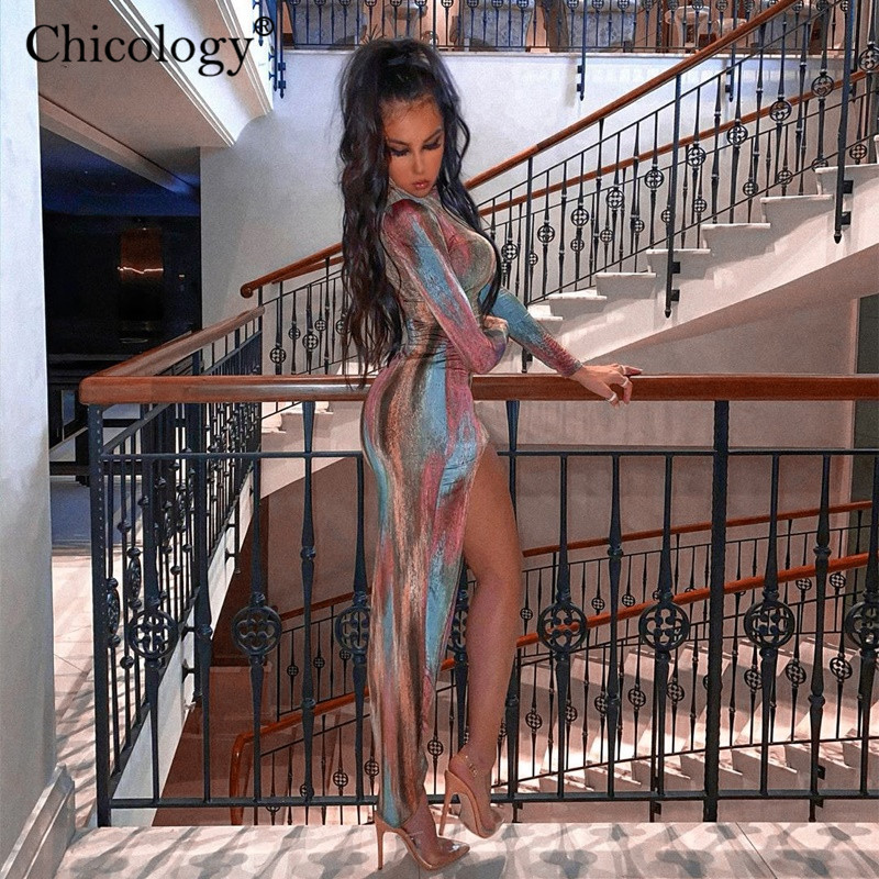 Women Elegant Long Sleeve Side Split Midi Dress Turtle Neck Bodycon Outfit L0169