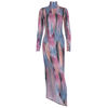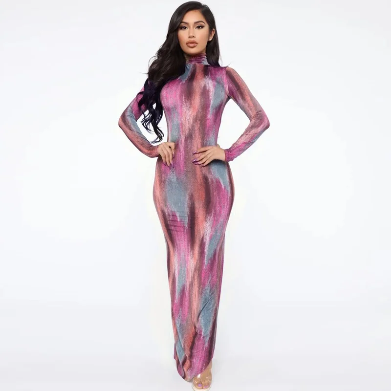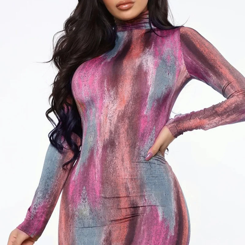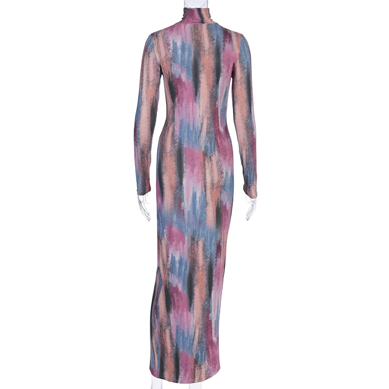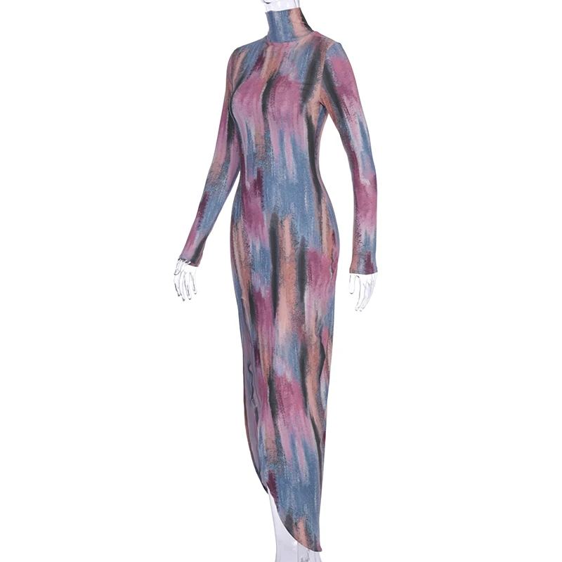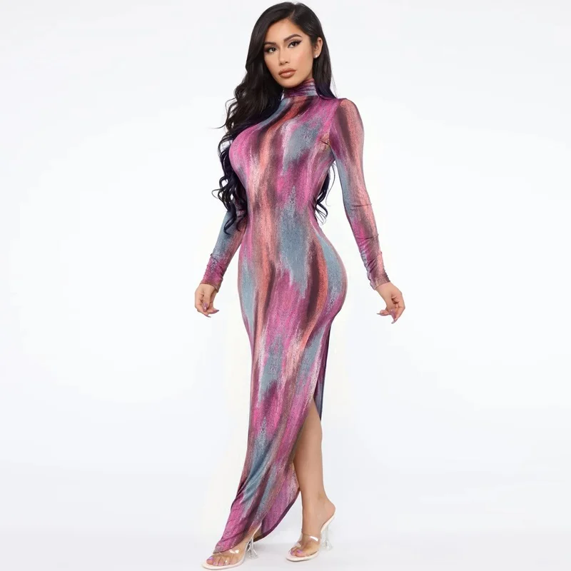 Women Elegant Long Sleeve Side Split Midi Dress Turtle Neck Bodycon Outfit L0169