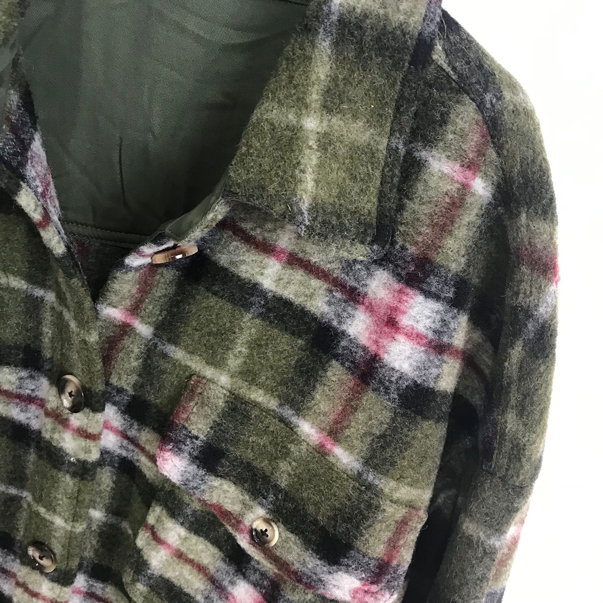 Women Elegant Woolen Coat Plaid Print Wool Turn Down Collar OG0696