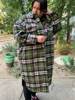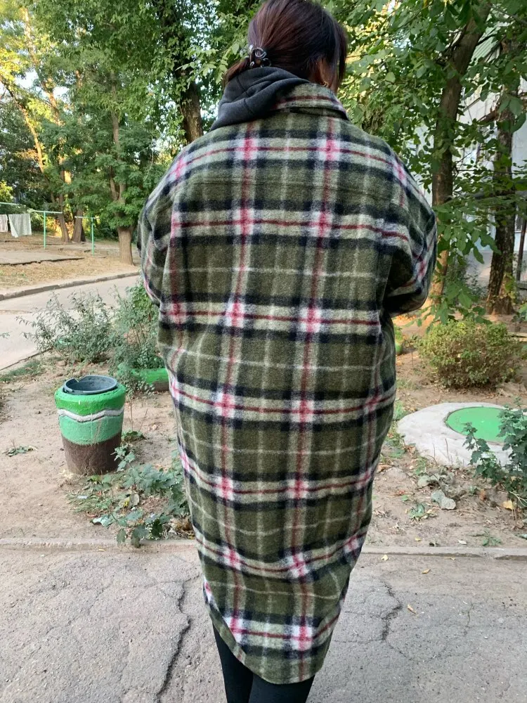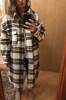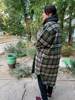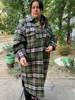 Women Elegant Woolen Coat Plaid Print Wool Turn Down Collar OG0696