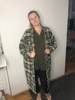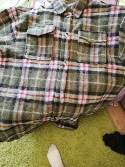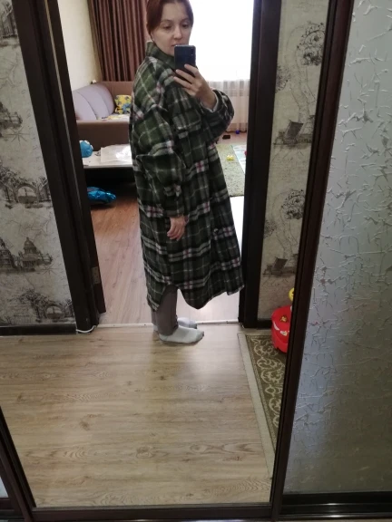 Very qualitatively executed, all seams are even. It is rather a cardigan, at the beginning of autumn, the end of spring. If there was a lining, it would be very good. On the growth of 162 sleeves is very good, suitable for size 46-48 Russian, oversize. Above 165 cm tall sleeves will be short. Fabric for like fleece.
