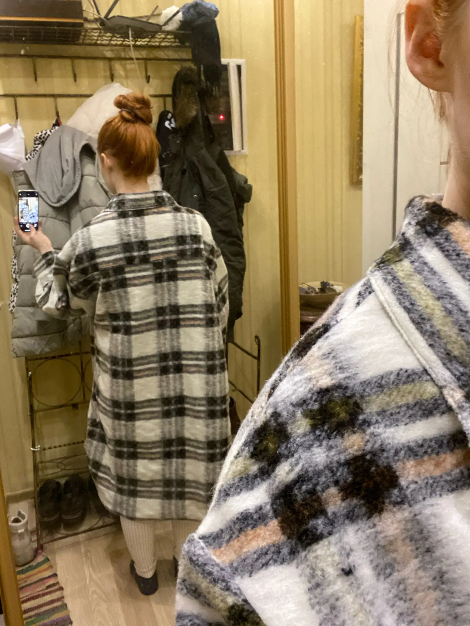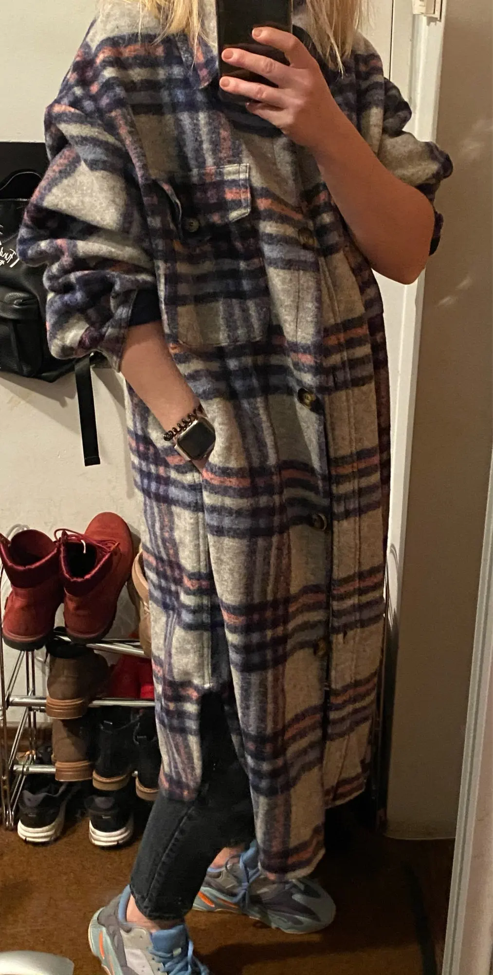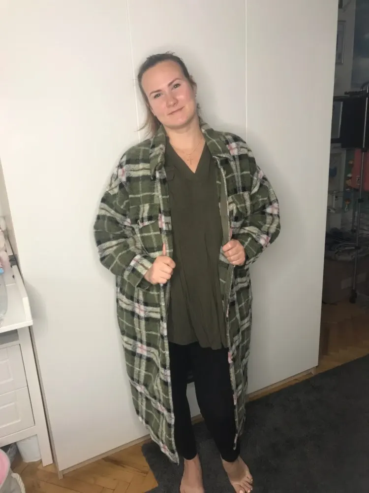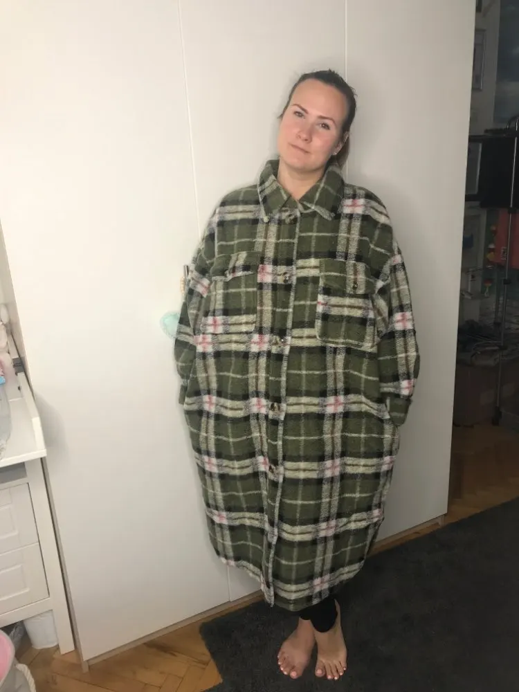 This is my second purchase from store. I had purchased the blue plain in 2020 and loved it so much, I wanted the beige. Item is thick, well lined and warm. I ordered L at 173cm and it’s oversized and sits at my calves. Love this coat. 3 weeks from order date to arriving at door step