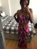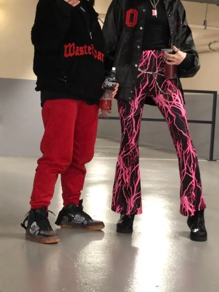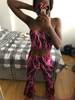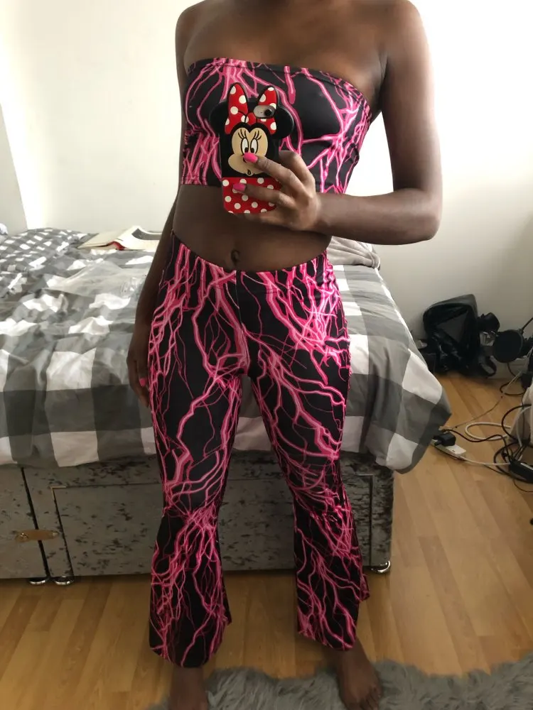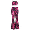 Women Festival Clothes Lightning Print Boob Tube Crop Top Flare Pants Two Piece Matching Set L0175