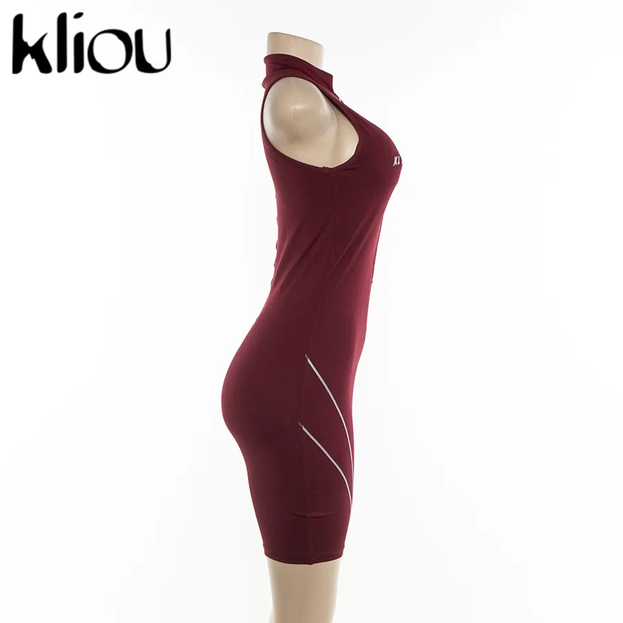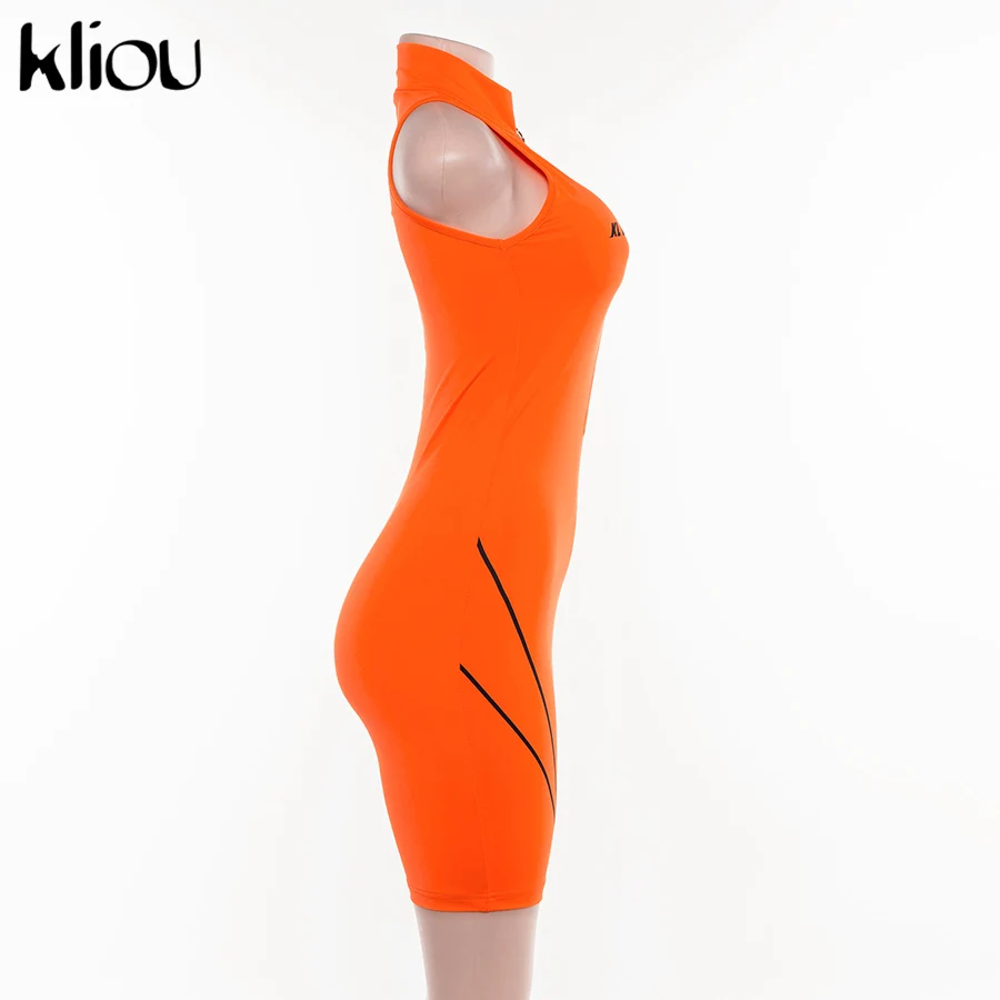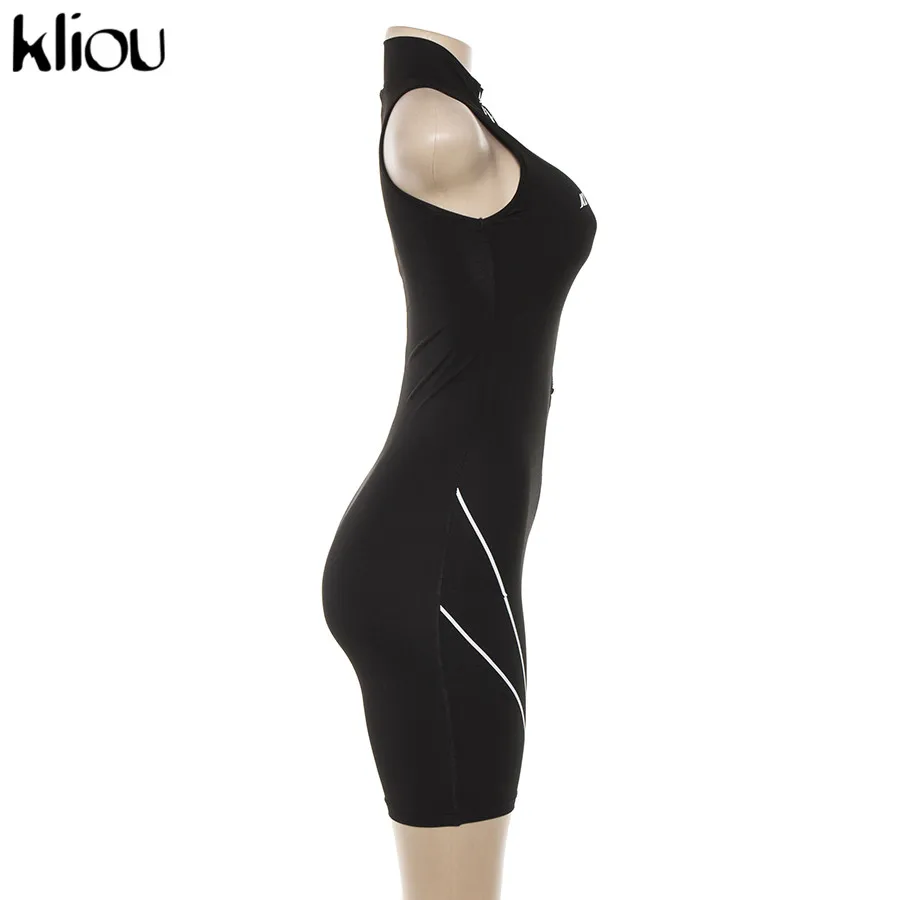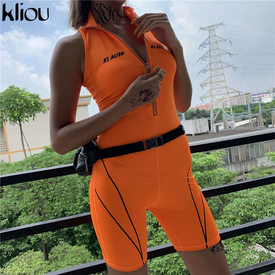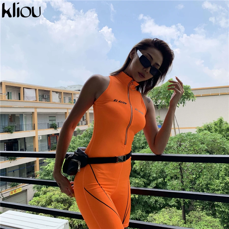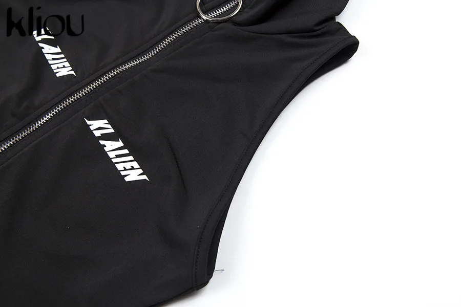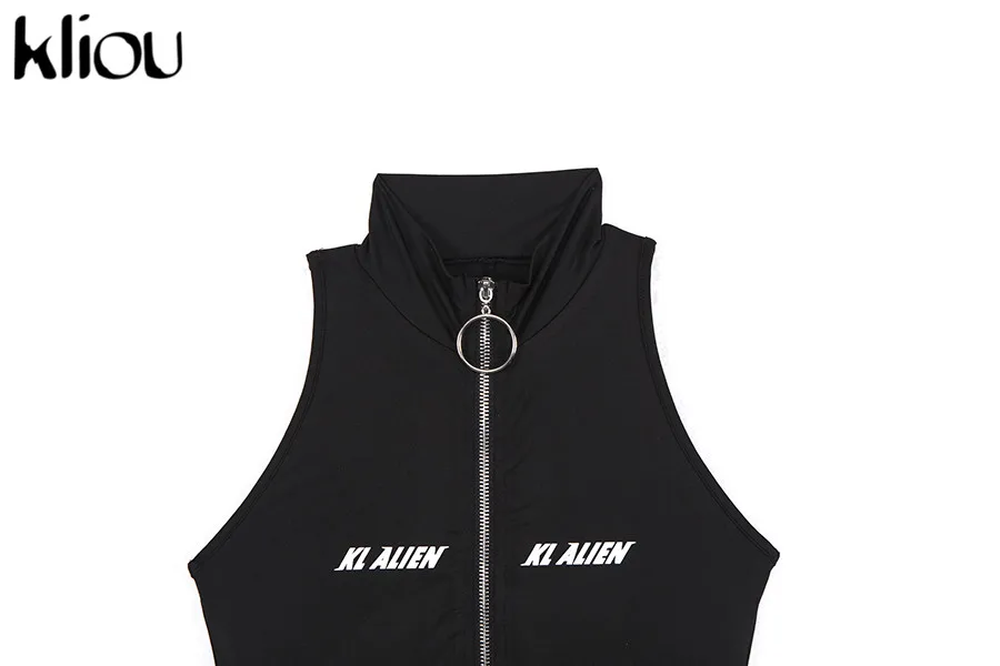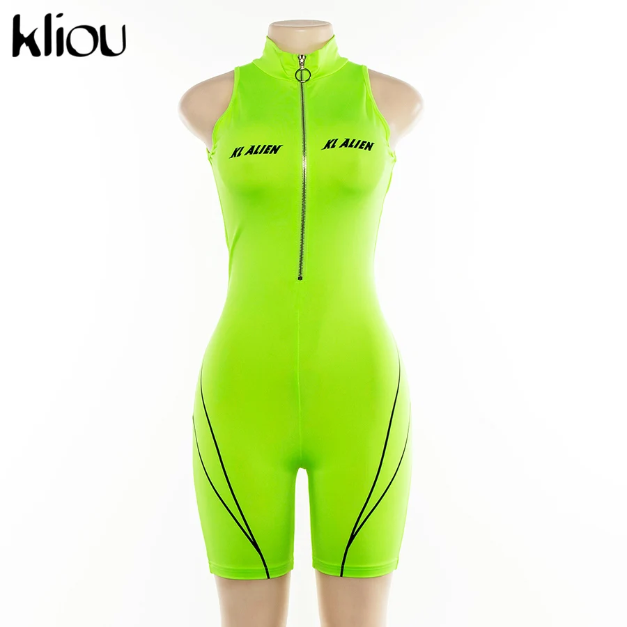 Women Fitness Playsuits Sleeveless Turtleneck Zipper Fly Letter Print Patchwork Bodysuit