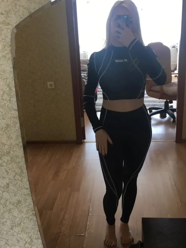 Chic suit, on the parameters 93-69-92 size M sat perfectly. Bought for 1050 rubles. The quality is perfect, suitable for sports. When washing, the letters did not wipe.