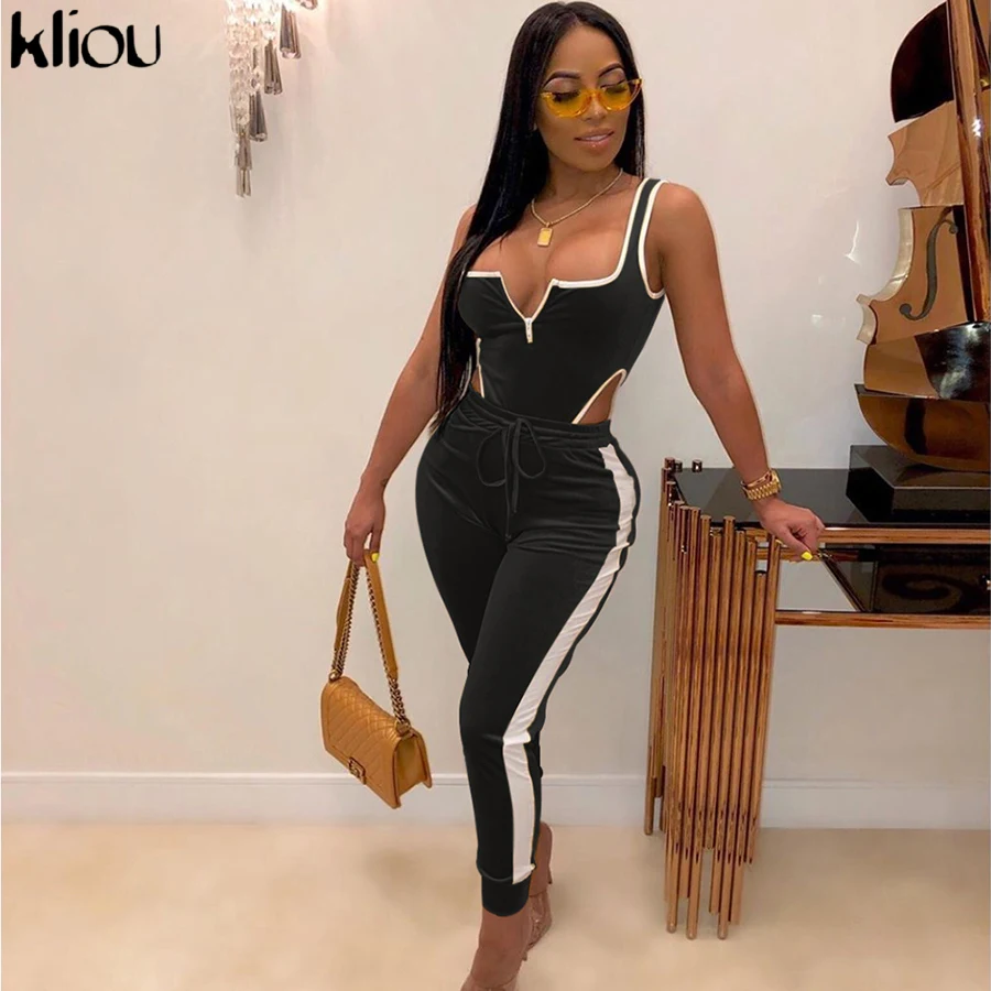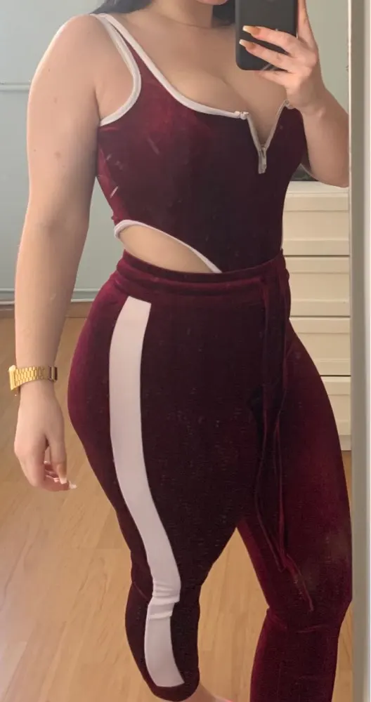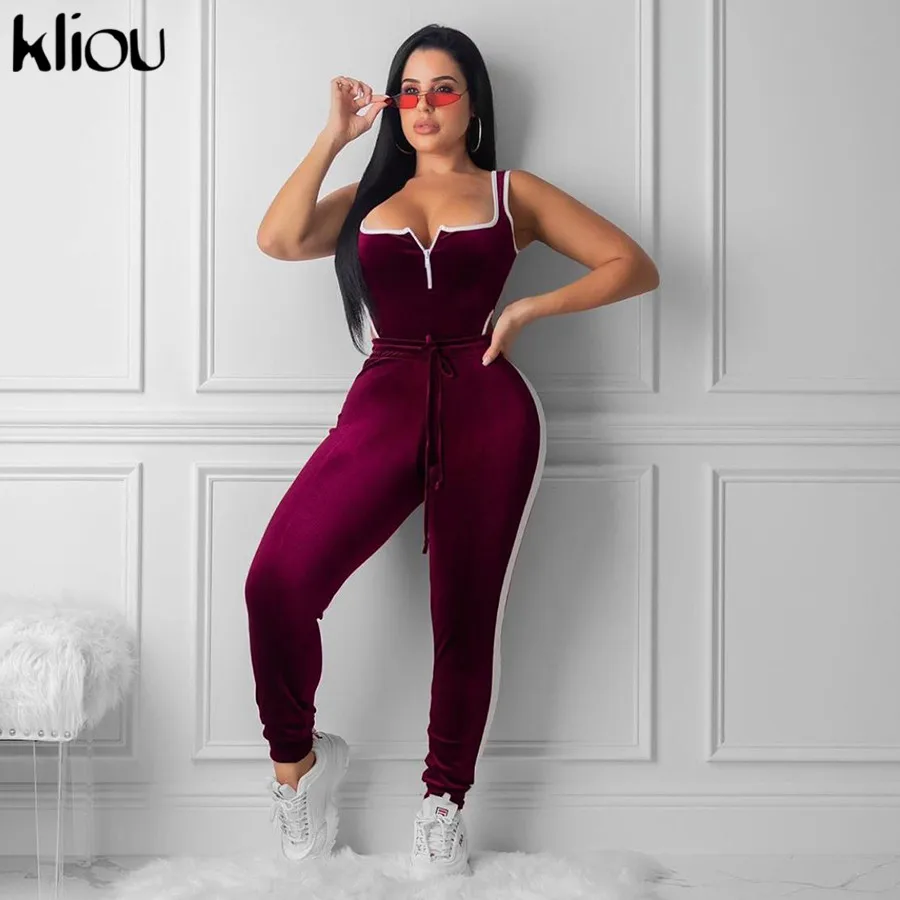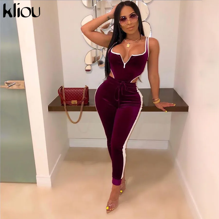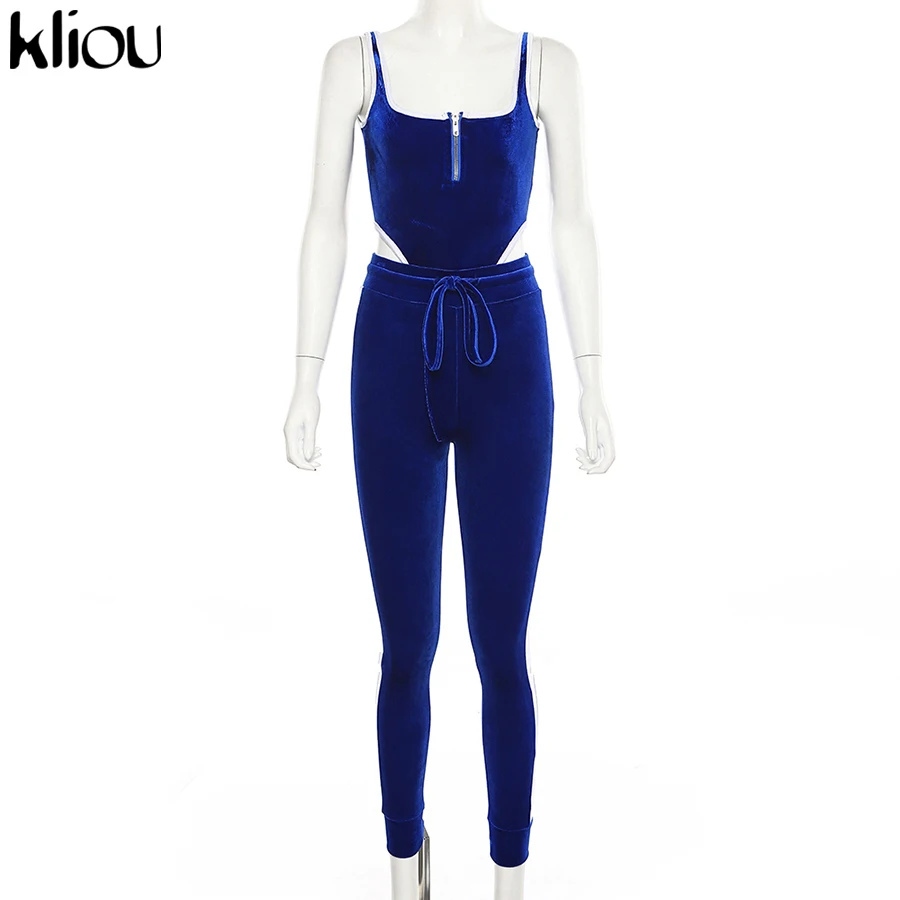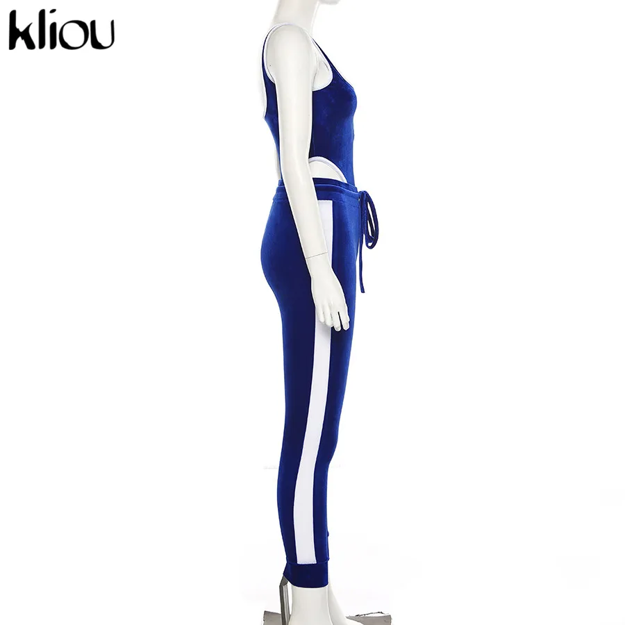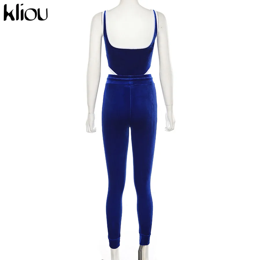 Women Fitness Sporting Velvet Two Pieces Set Outfit Strapless Sleeveless Bodysuit + Leggings Drawstring Pants Tracksuits