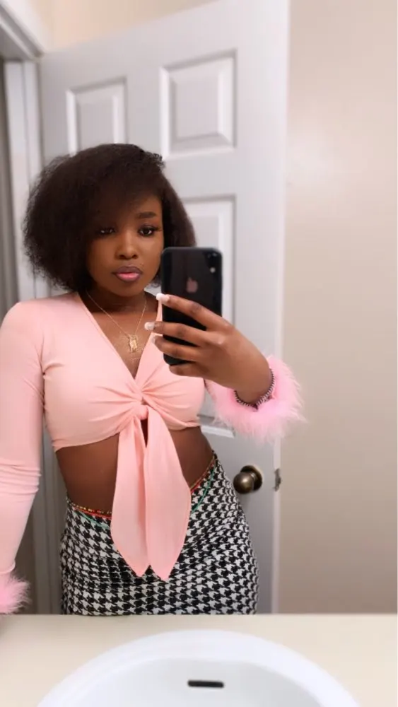 Women Fur Long Sleeve Lace Up V Neck Sexy Crop Top L0161
