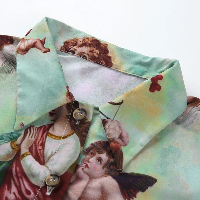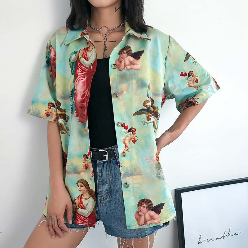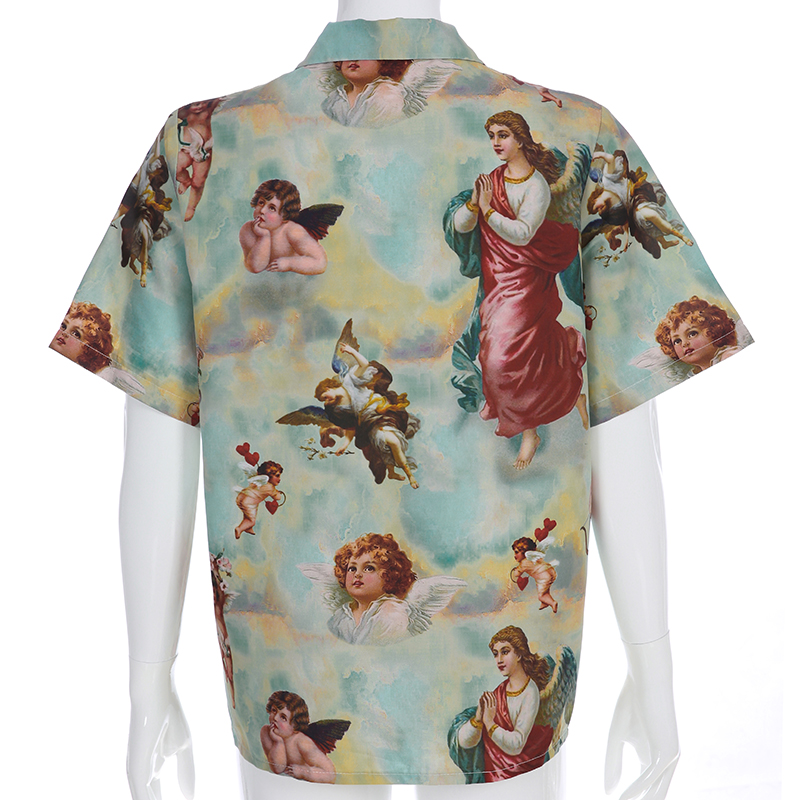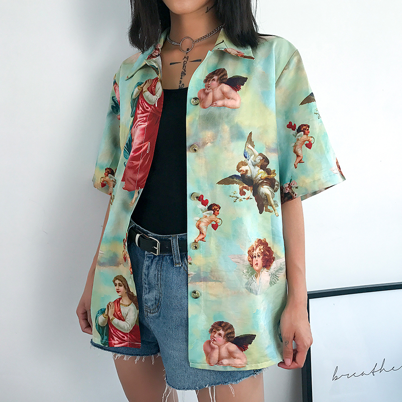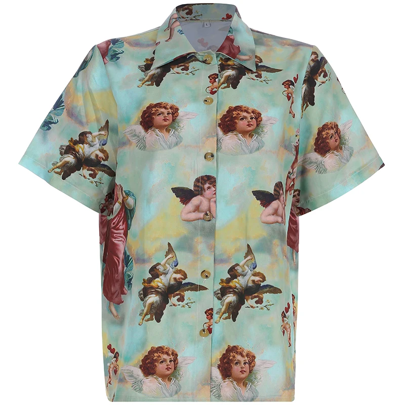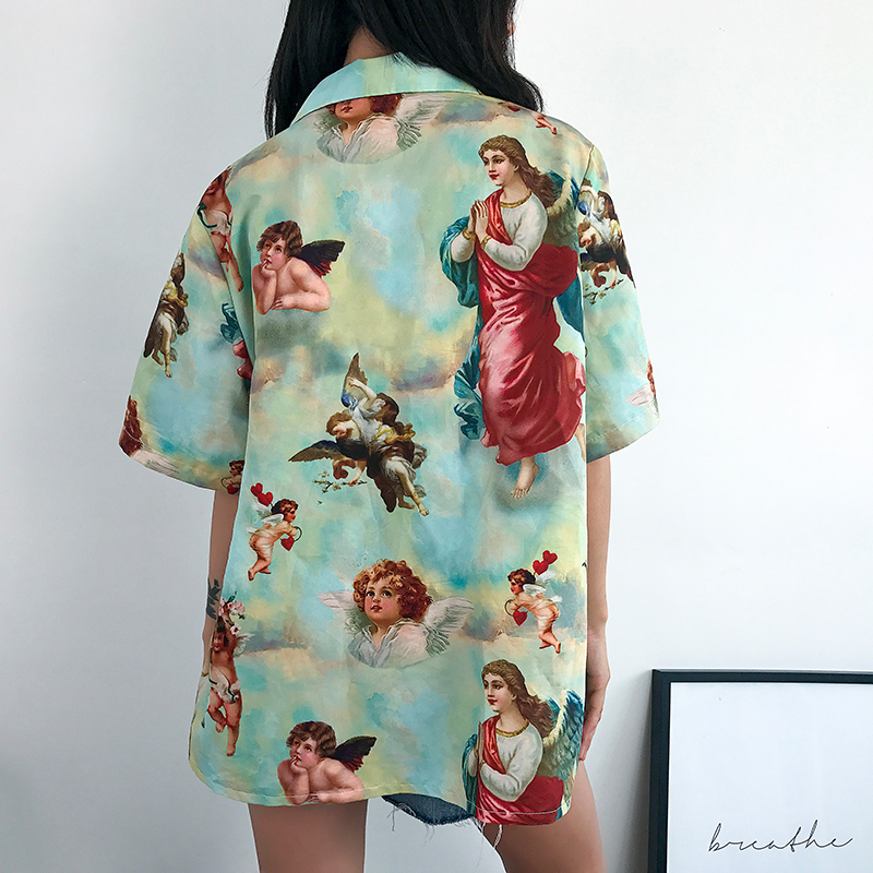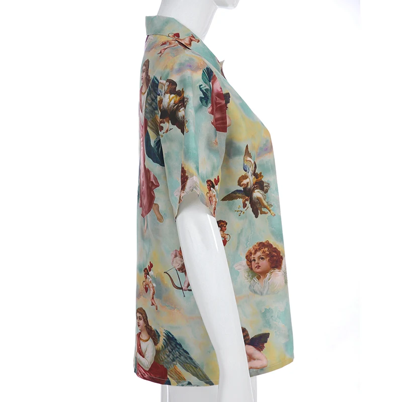 Women Half Sleeve Vintage Blouse Angel Printed L0073