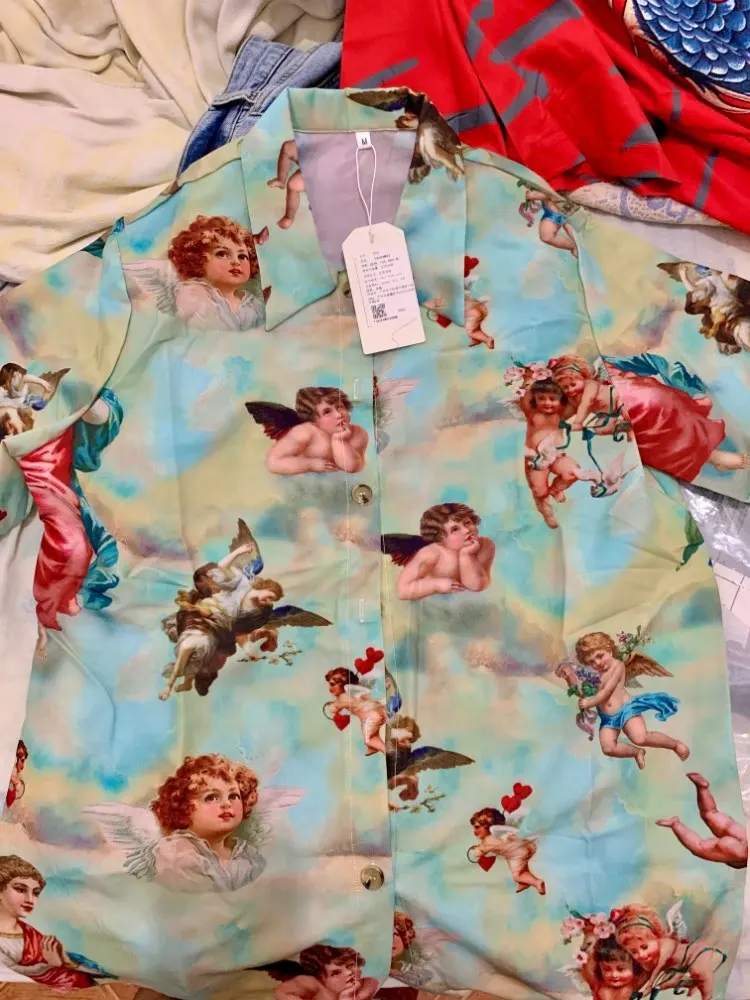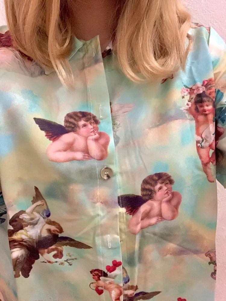 Women Half Sleeve Vintage Blouse Angel Printed L0073