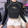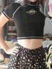 Women Letter Embroidery Chic Fashion Black Basic Tshirt L0190