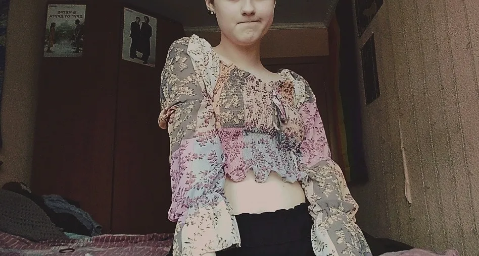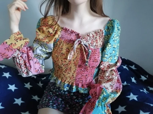 Excellent blouse, afraid that I will be small (I'm in the body, chest 92, waist 77), but was pleasantly surprised. In the bag put another cute colored rubber.