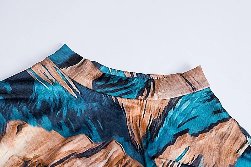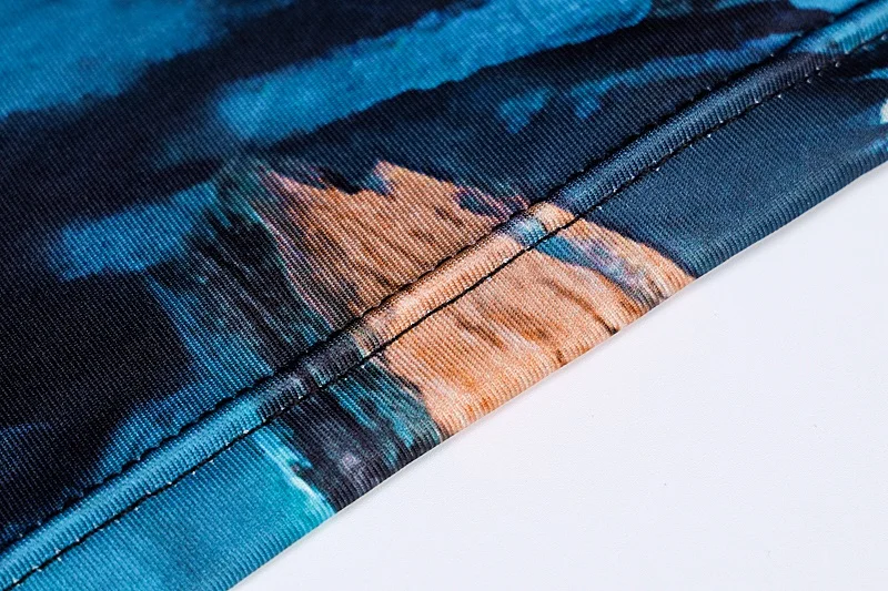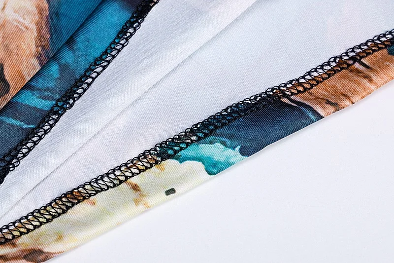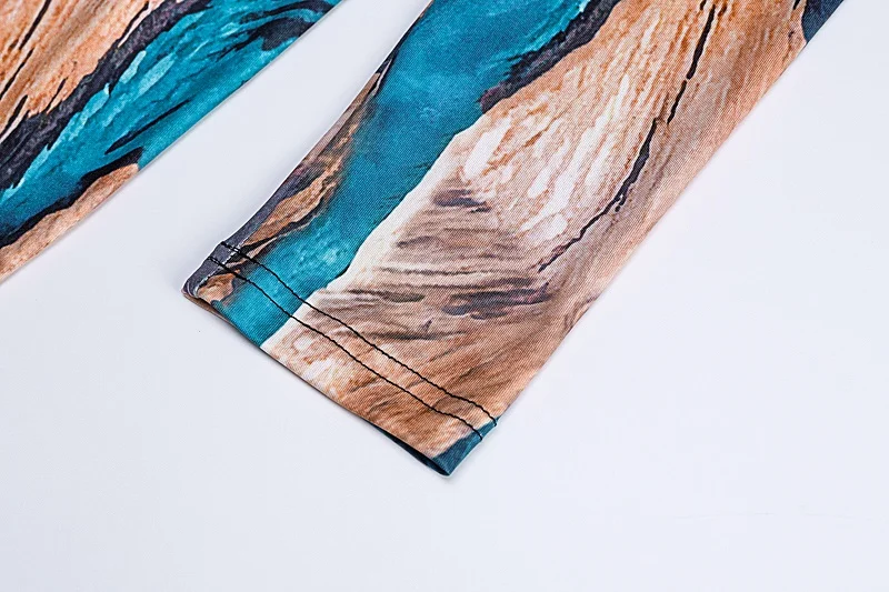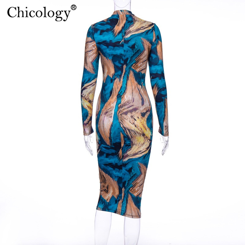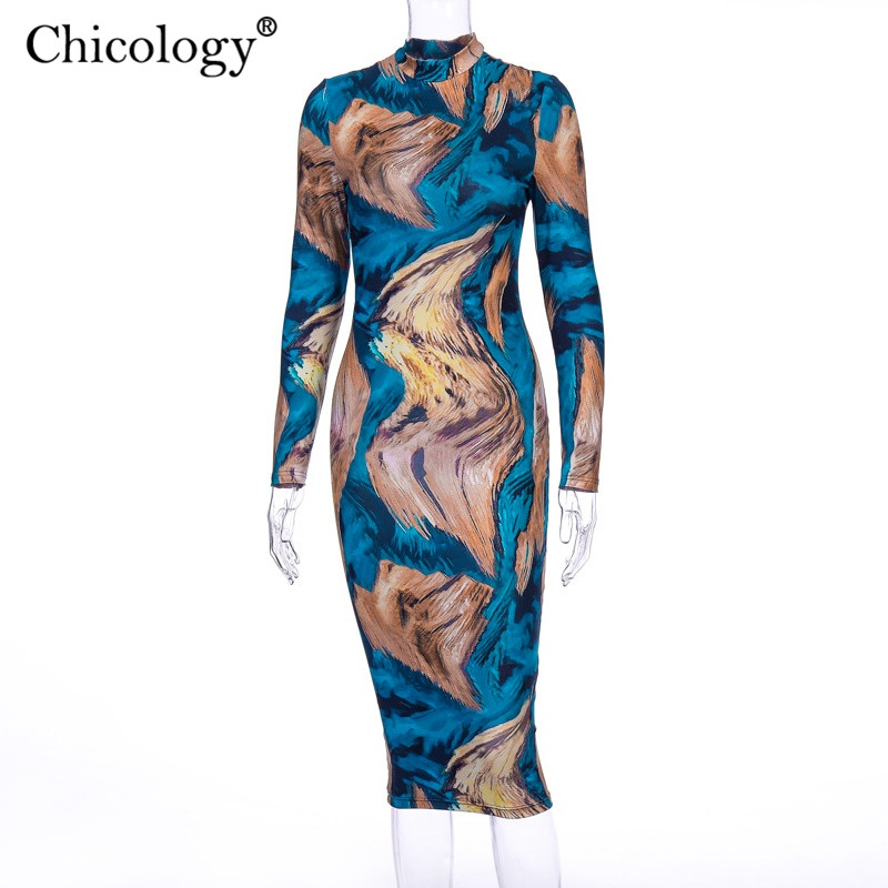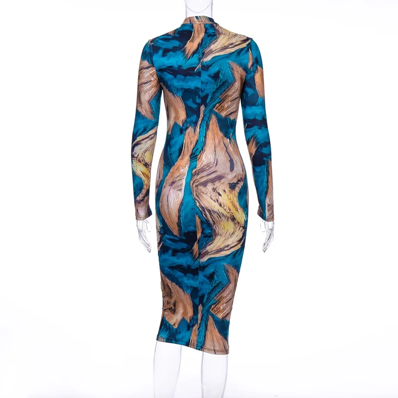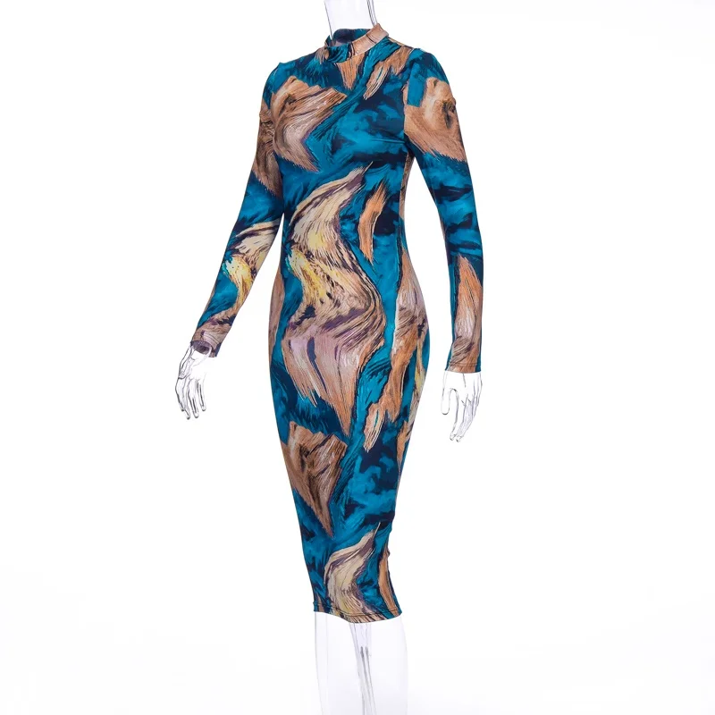 Women Long Sleeve Aesthetic Wave Print Bodycon Midi Dress L0163