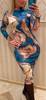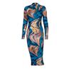 Women Long Sleeve Aesthetic Wave Print Bodycon Midi Dress L0163