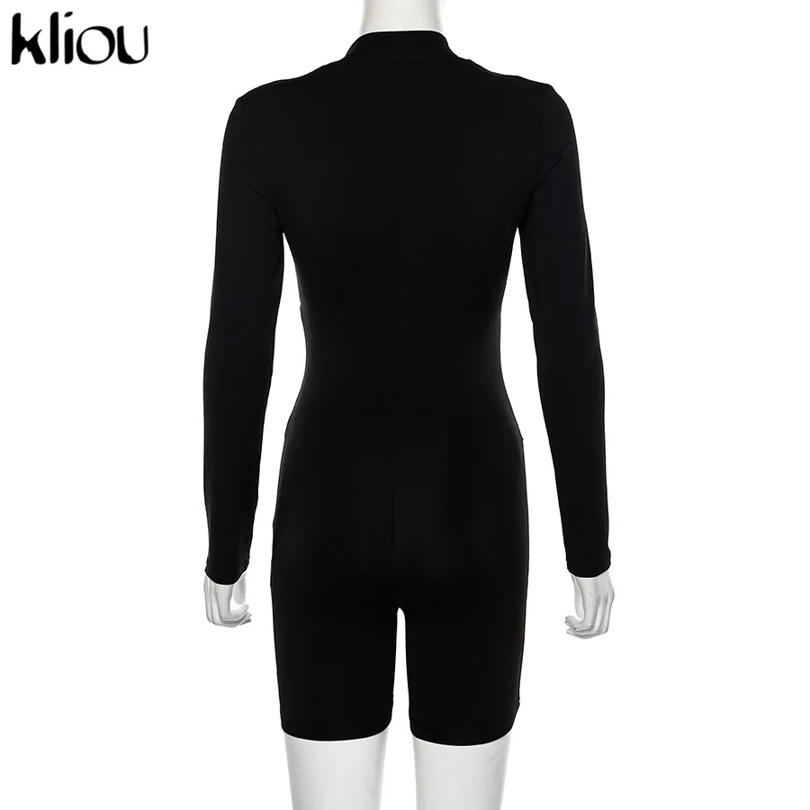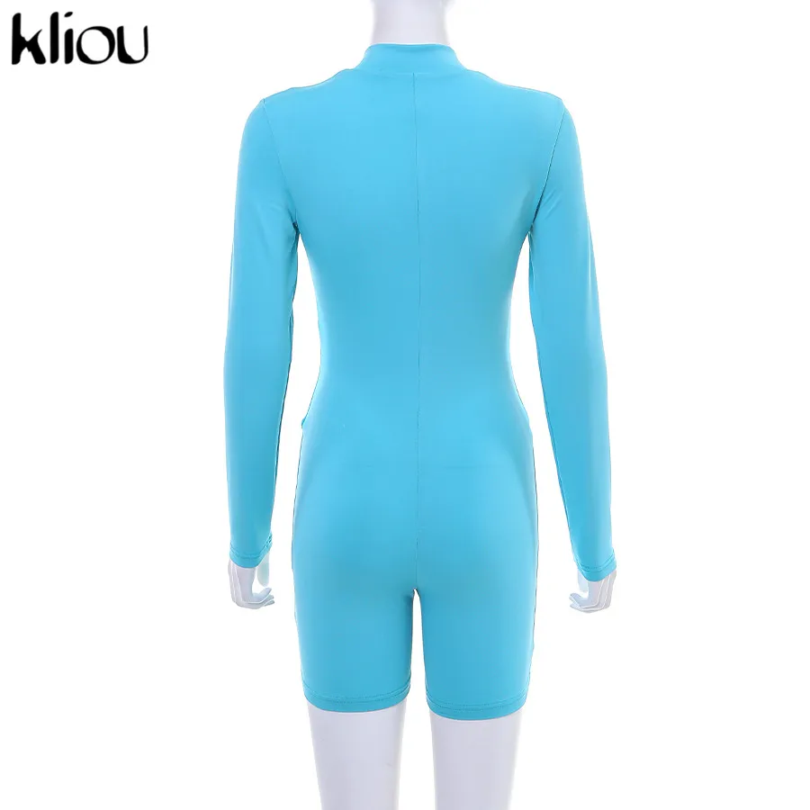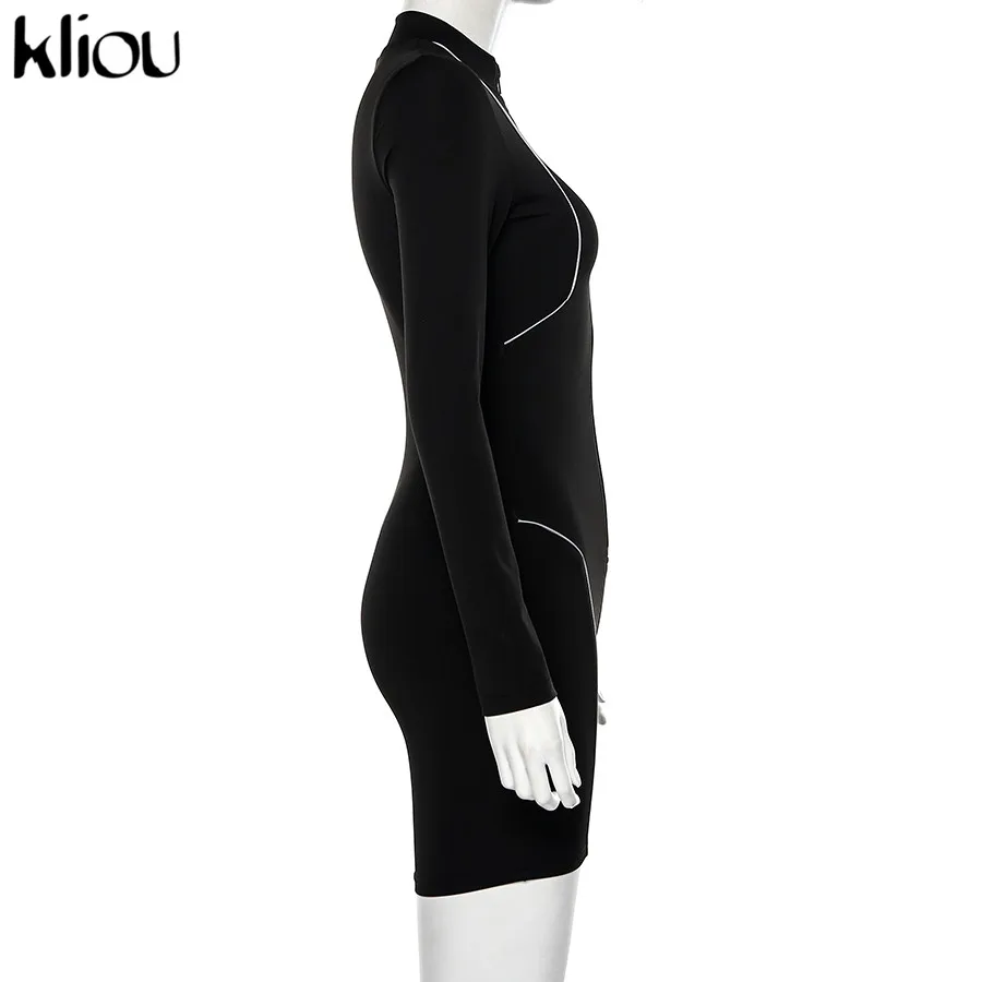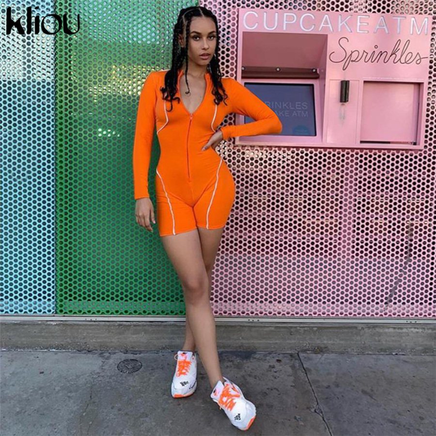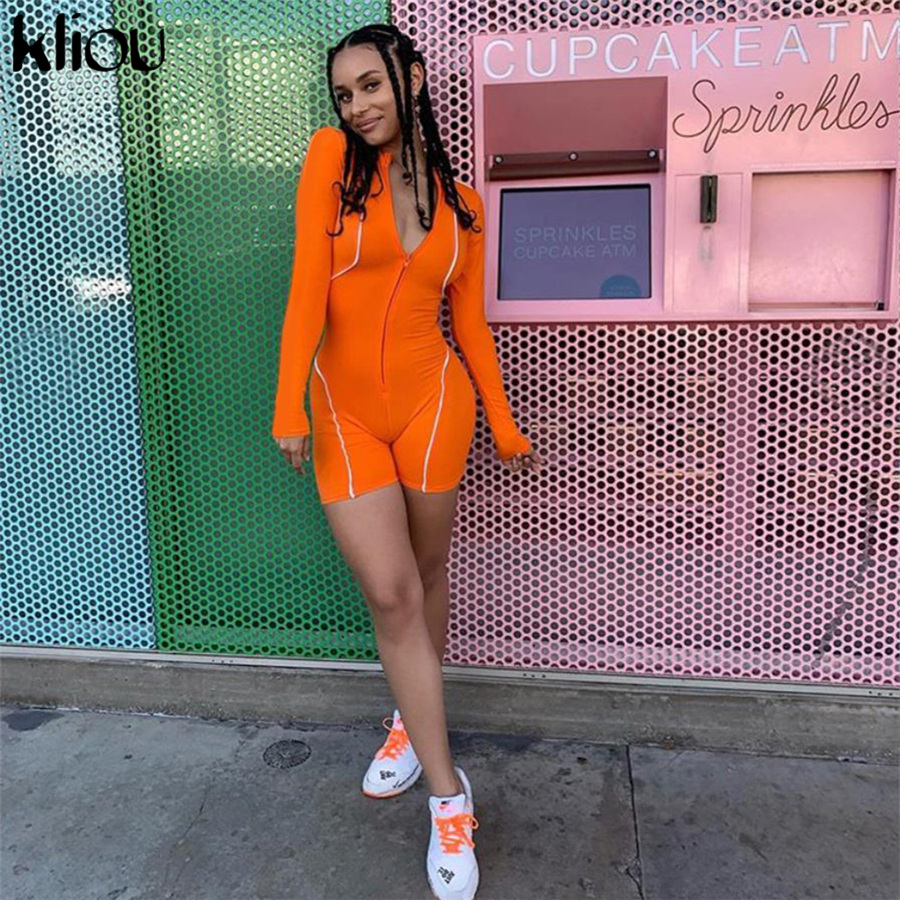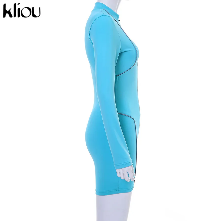 Women Long Sleeve Zipper Reflective Striped Patchwork Bodycon Jumpsuit
