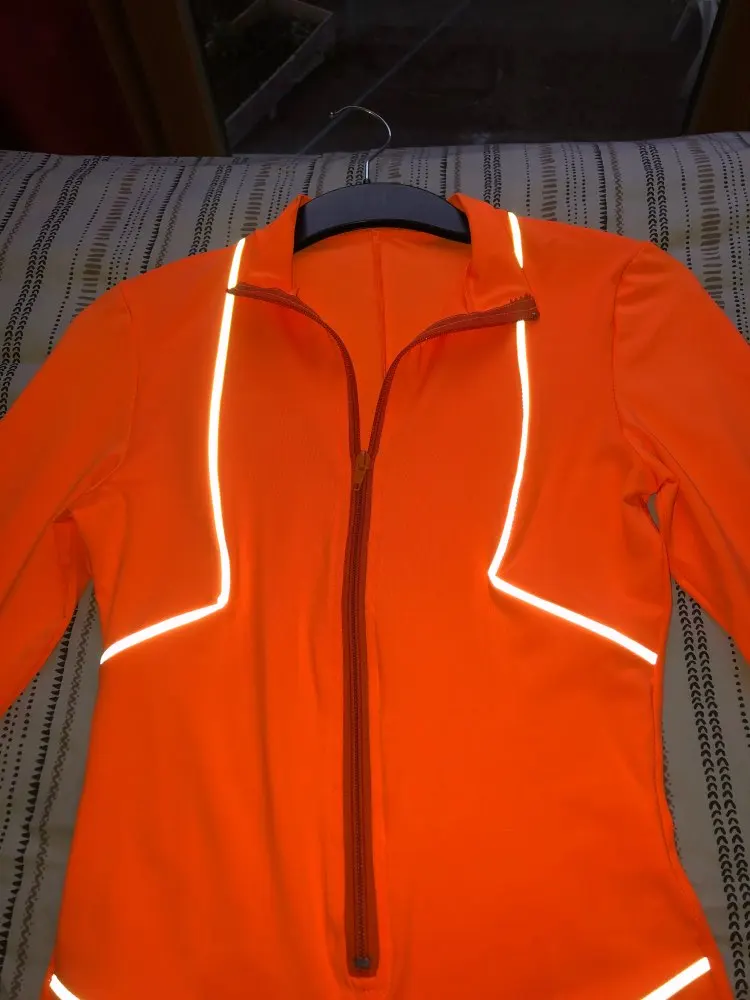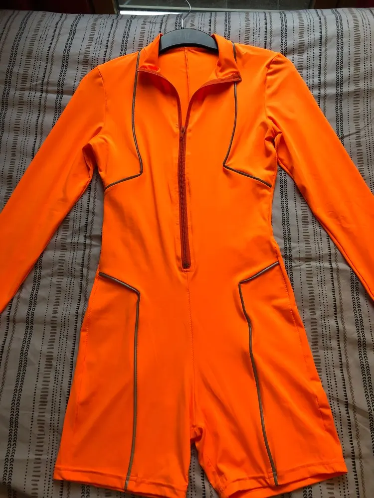 I like this. Exactly like photo, thick material and doesn’t feel cheap. I’m 5’2 about 180LBS and it fits great .. my lil gut shows but that’s light haha .. not see through at all and is reflective. Obviously took forever (2 months) because of Ms. Rona but it’s fine .. not like I can go anywhere anyways.