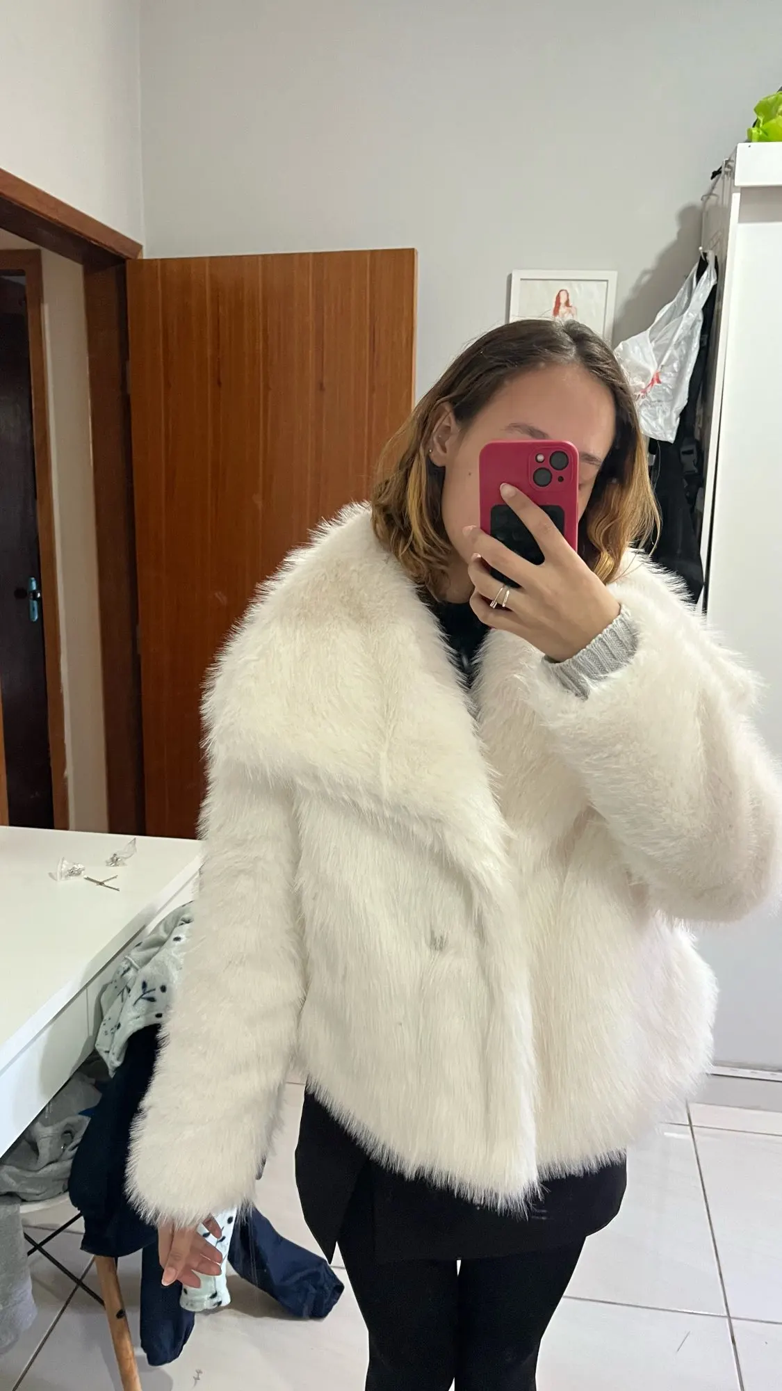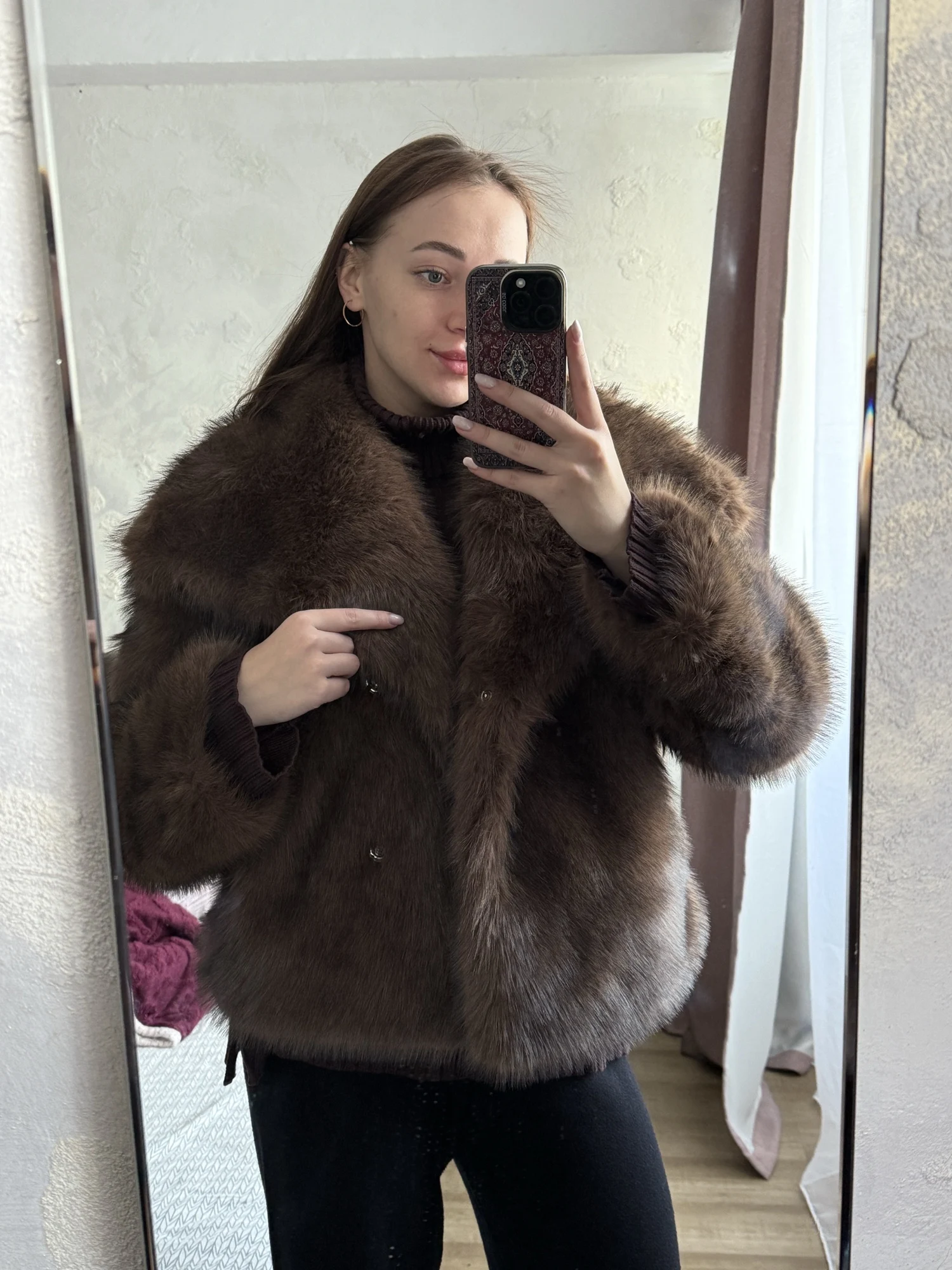 The most adorable fur coat, soft and well-made. I'm writing for petite people; I'm 156 cm tall and weigh 44 kg, ordered size M, turned out to be moderately oversized. Sleeves are normal. I think size S would have looked better, but it would have been shorter, which I wouldn't want. Arrived in 10 days in a regular package, well folded. Not worse than the rags hanging in our stores, but for 10-15k. Perfect to diversify your wardrobe!