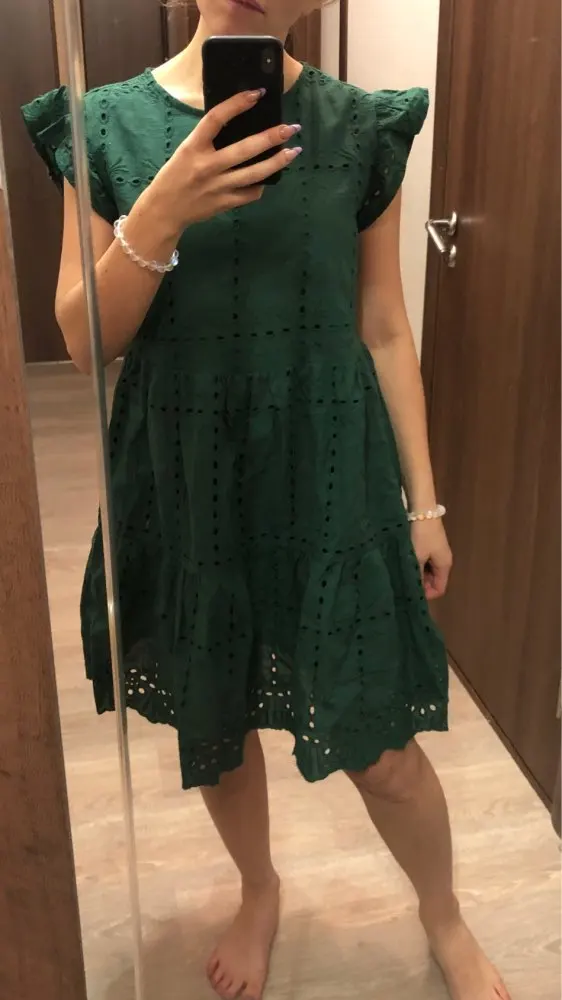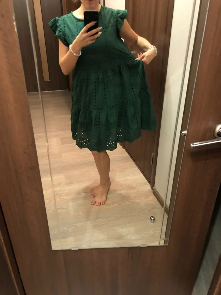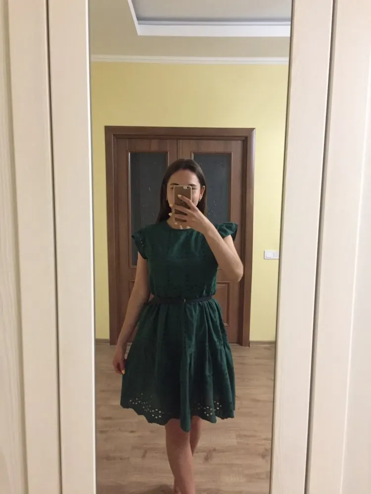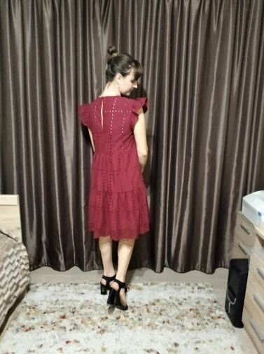 Finally pay it!!!! The Parcel was little more than a month. Track to track. Seller happy, responsible, if there are questions. Now about the dress. I am very happy!!! Yes, threads for embroidery stick, but I with scissors make friends, gather the little things in life. Everything else is fine. This is my first purchase clothes (not including swimsuit, he also went). Color is wonderful, as pictured. Size S the 44-46 (46). OBM chest 90, waist and hips does not really matter, loose-fitting dress. The growth of my 170. Dress just above the knee. If you want you can is gathered thin rubber band of the legs to the waist, will a close-fitting (that I and try to make the curious, what happens, do not like it, take away). Can be worn under your belt. IN general, as you like. IN general is very happy and dress, and the store! (For the money) to buy recommend!