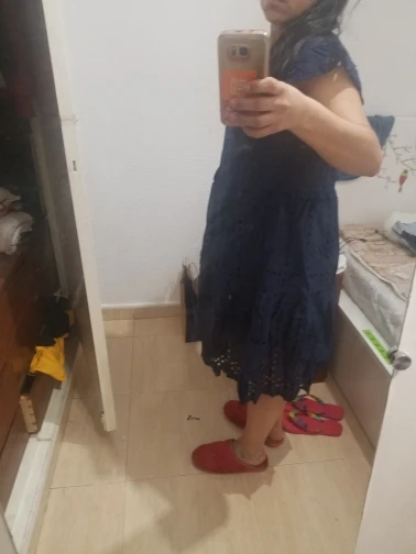 The dress is very nice, very good quality, the fabric is soft and worth it, but to my q I'm usually size L, I got super huge, wide and super long on my 155 m; so if you can buy a size less then still it will be a little loose. Shipping was fast 20 days the most