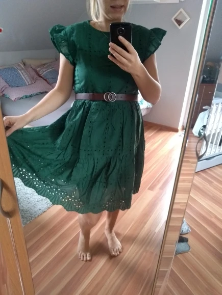 All OK pretty dress, as the picture wzięłam size L to under bust fit I 100 mogłam wziasc size M, is a little big and I am in 7 month pregnant, dress zamówiłam for summer, but quietly now fit, in summer ladies strap and will be OK. I am satisfied with the dresses nice green color :) dress have petticoat wszytą, dołączam zdjecia, can see. Very fast shipping thank you