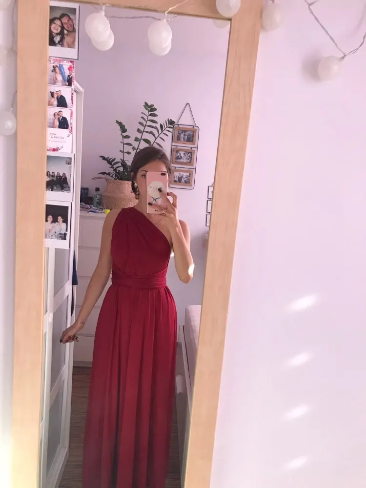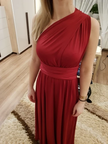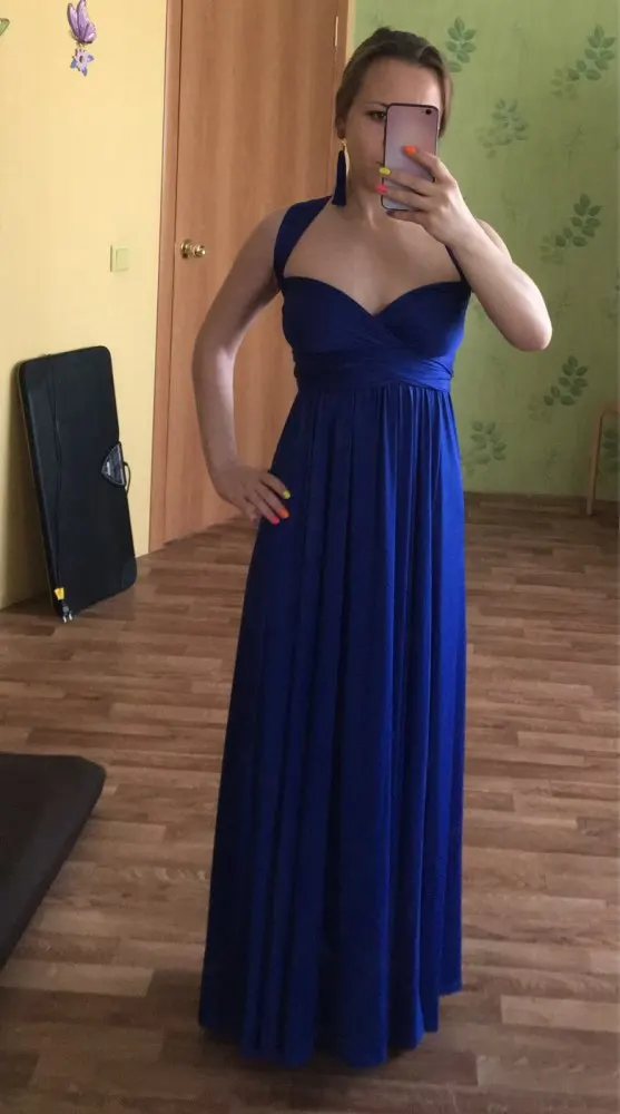 Thank you . You are trustful store. Fast shipping to UK . ordered on 11.11 recieved on 27.11 only 16 days. The dress is very beautiful , soft and good material : nylon, polyester and Spandex. The material is stretchy . I chose 7 dresses for my bridesmaids. The size S fits perfectly on them 85-60-90 height 160cm excellent length.. Not too tight, not too short. Just perfect. In real looks better then in photos. I am very happy with my purchase and of course I recommend the seller. I will order for myself black and red. Thank you very much.