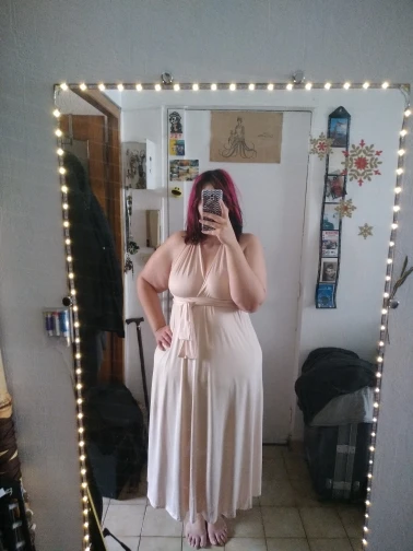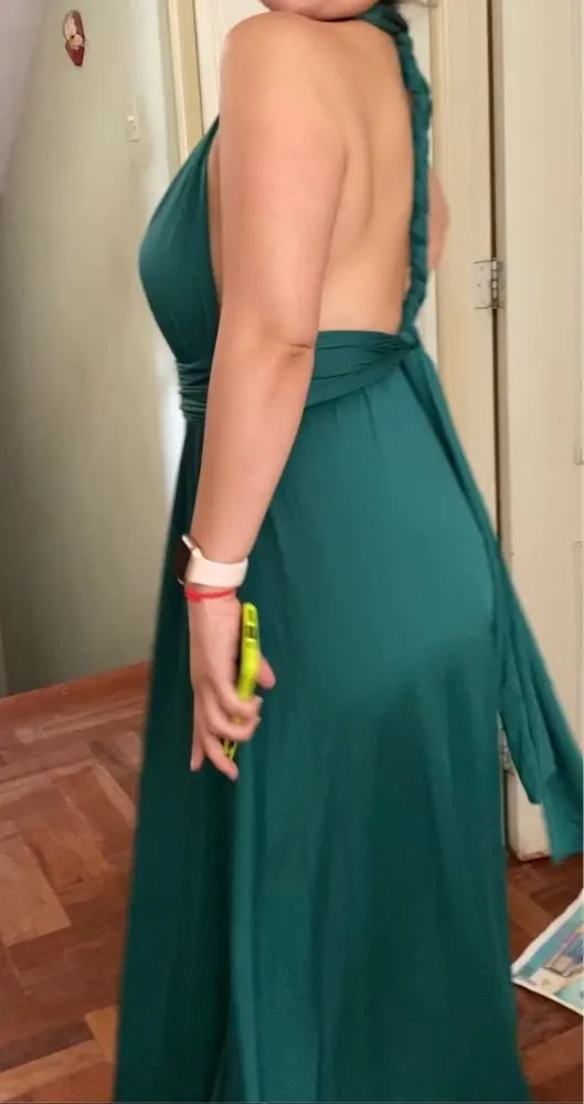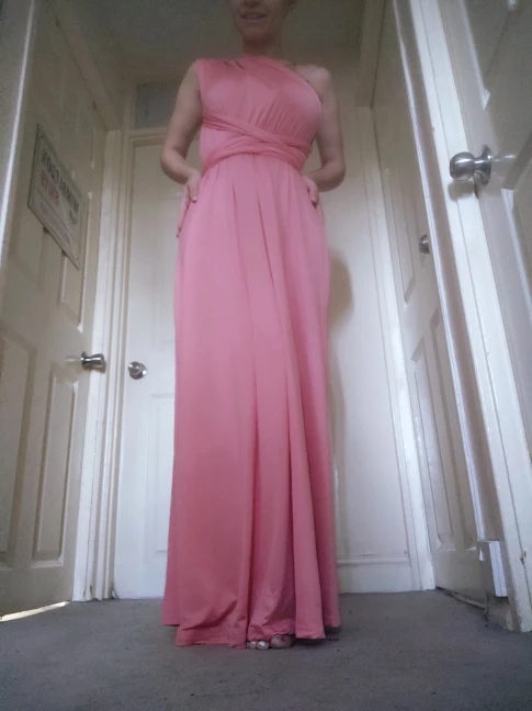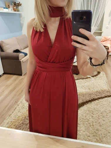 Beautiful dress put in many ways. Fabric soft and gorgeous color. I like it very much.