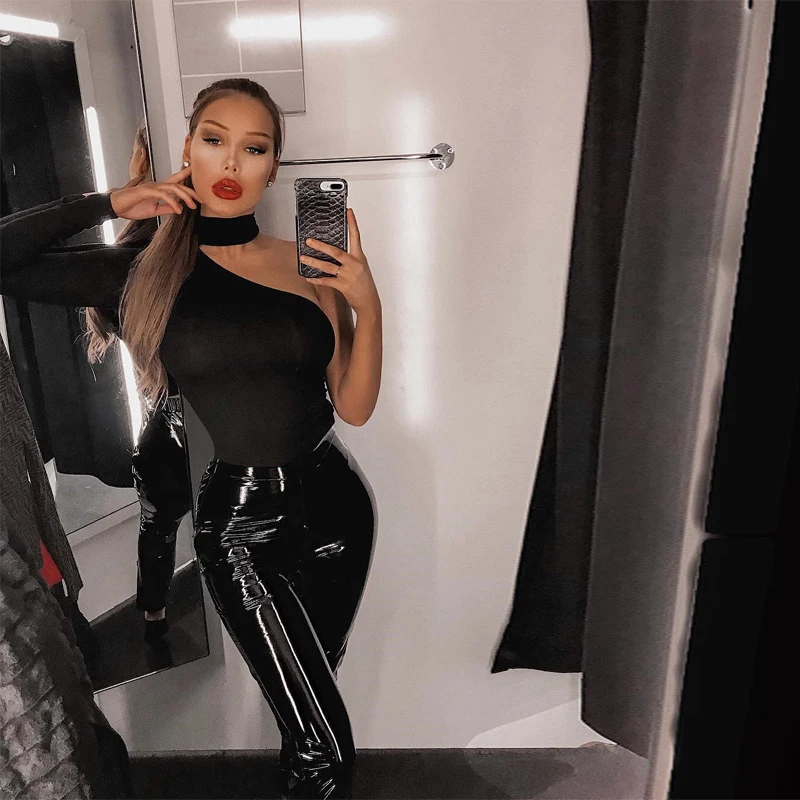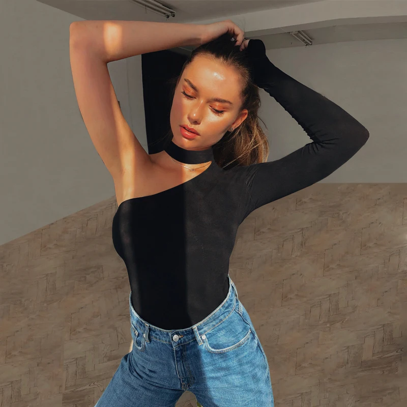 Women New Fashion 2020 Halter One Shoulder Bodysuit L0236