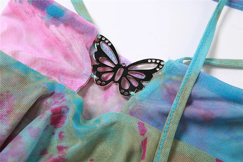 Women Rave Festival Outfit Matching Set Ruffle Butterfly Fairy Backless Crop Top And Wrap Mini Skirt Set OUT0981