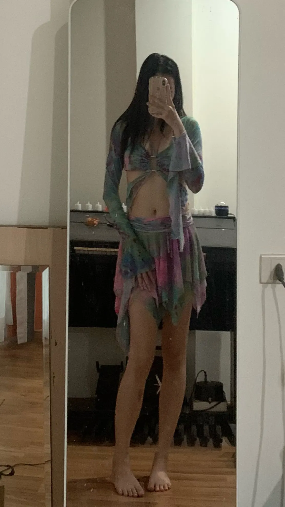 a bit complicated to put on at first but once you get the hang of it, its super cute!!! perfect for a festival or rave :) thank you so much! hope to wear this to burning man one year!!!