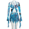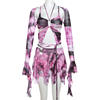 Women Rave Festival Outfit Matching Set Ruffle Butterfly Fairy Backless Crop Top And Wrap Mini Skirt Set OUT0981