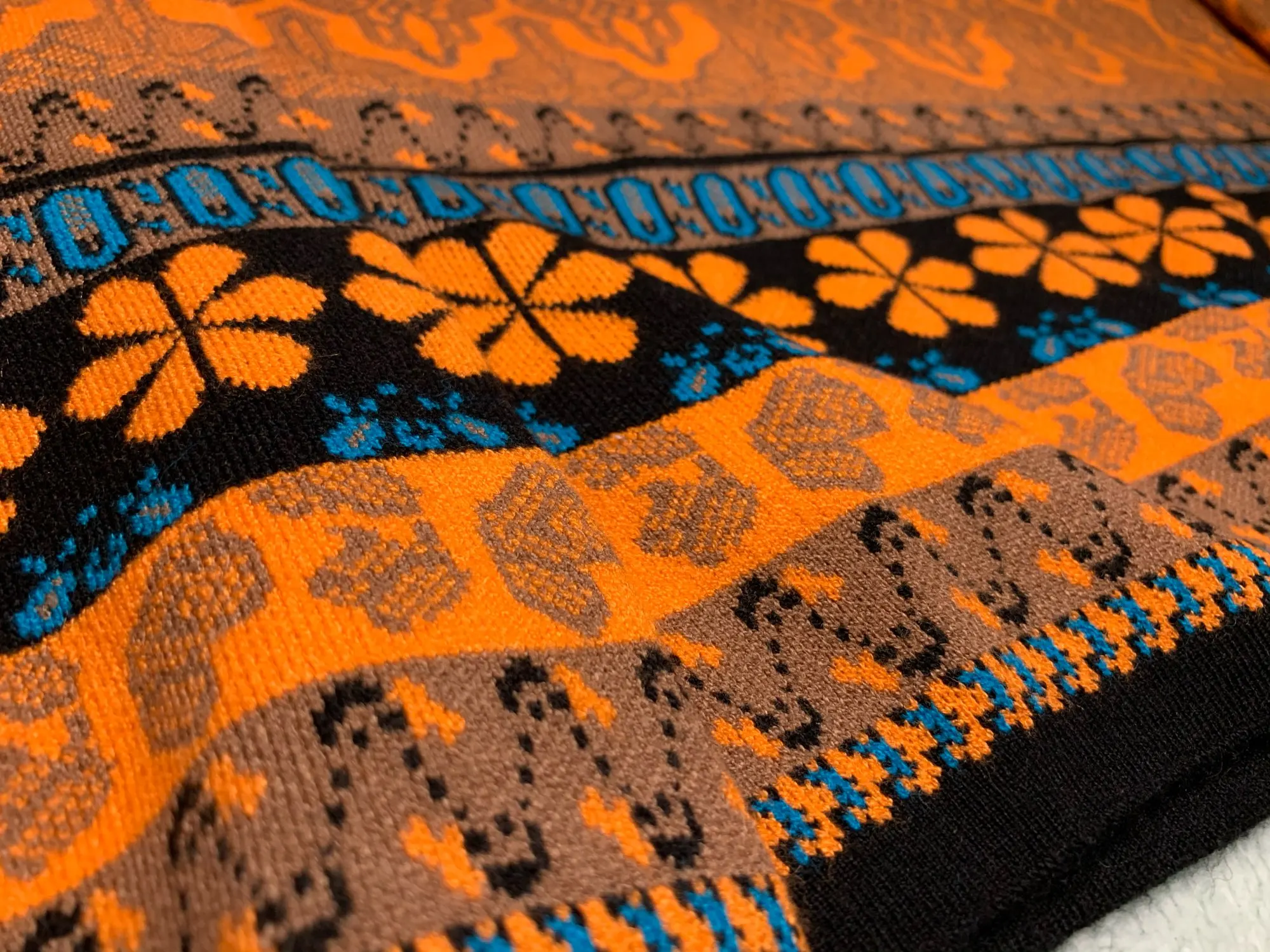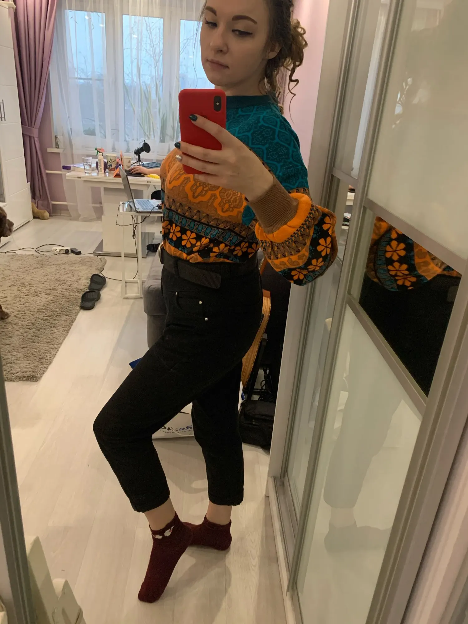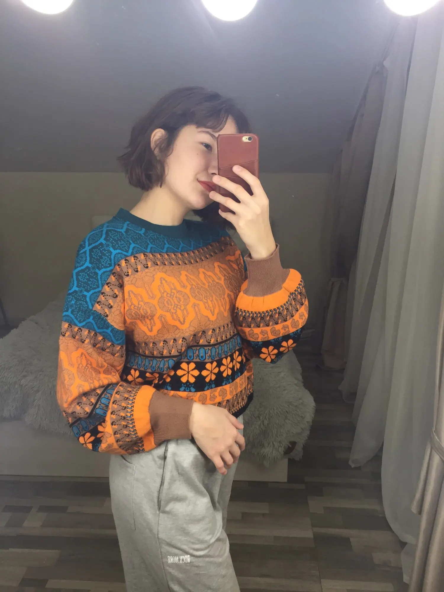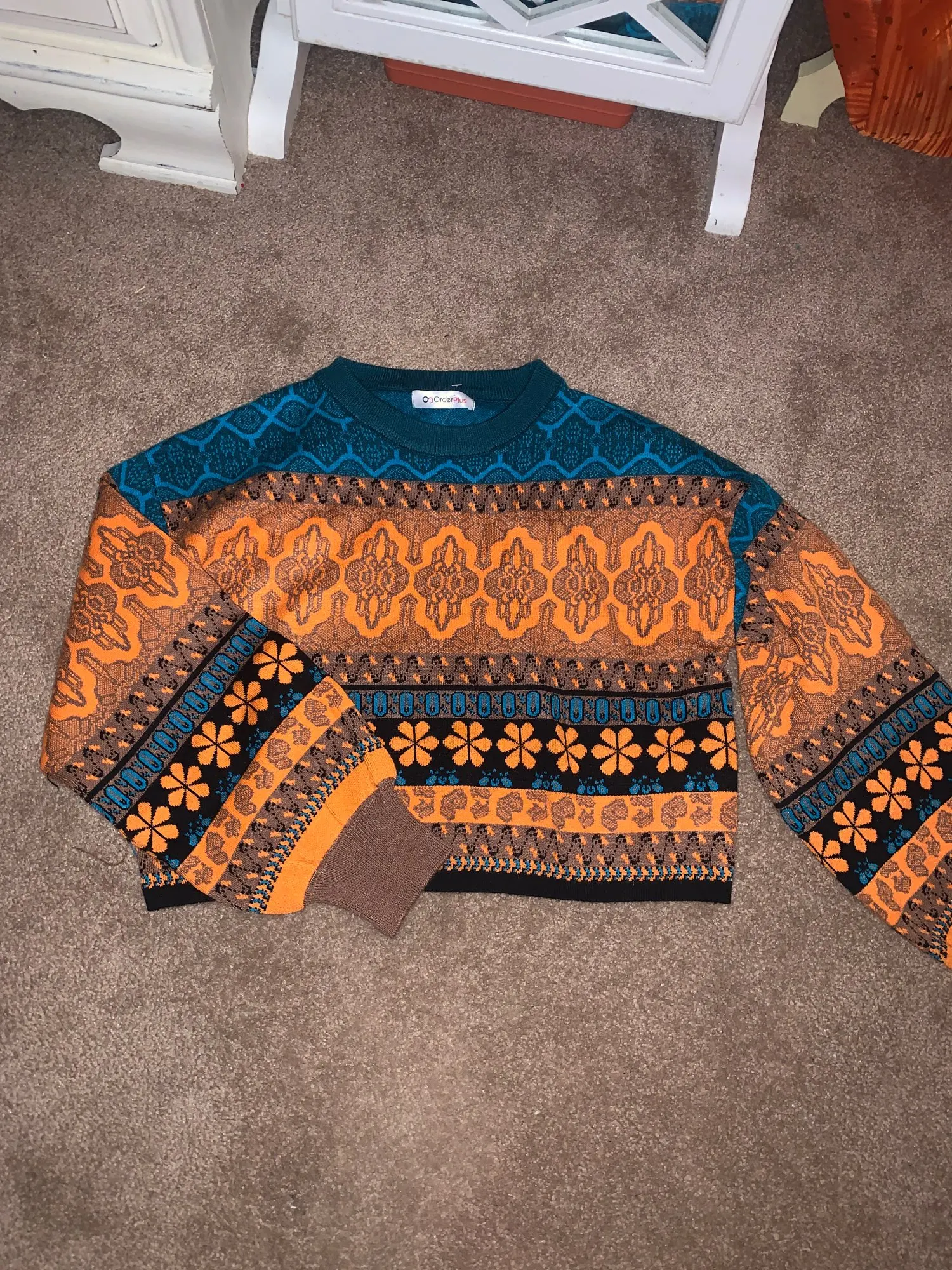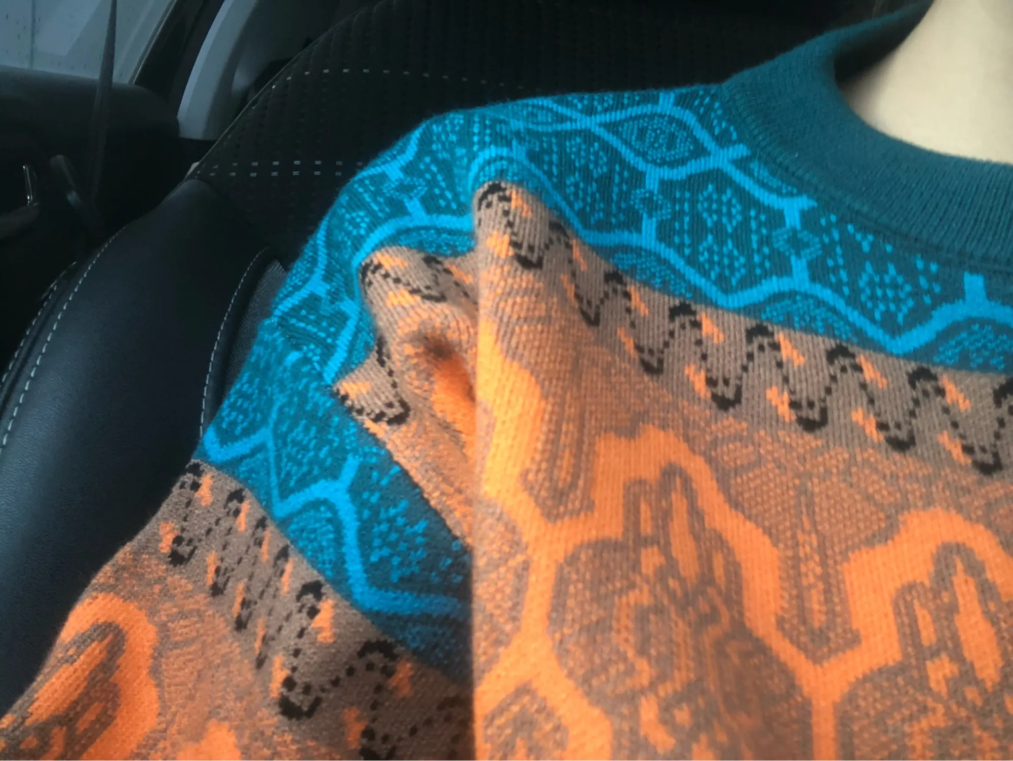 The goods came to me in two weeks, the parcel tracking until receipt. Packed in a zip bag, when unpacking an unpleasant smell was not. On its parameters 83-65-93, height 167 cm, I ordered a size M, he approached me perfectly. The size table is correct. The jacket is very warm, soft and pleasant to the touch. The coloring is very interesting. In Hindi style or retro, which I really like for a long time wanted to try on, something like that. The sweater is shortened, not prickly. The neckline is round, on the sleeves of the gum. The quality of tailoring is excellent, the seams are all stitched exactly without passes, without gaps. After washing does not shed, which is a sign that the thing is quality. Material: Polyester, wool, modal. Price now: 1547 but on sale 11.11 will cost 1281
