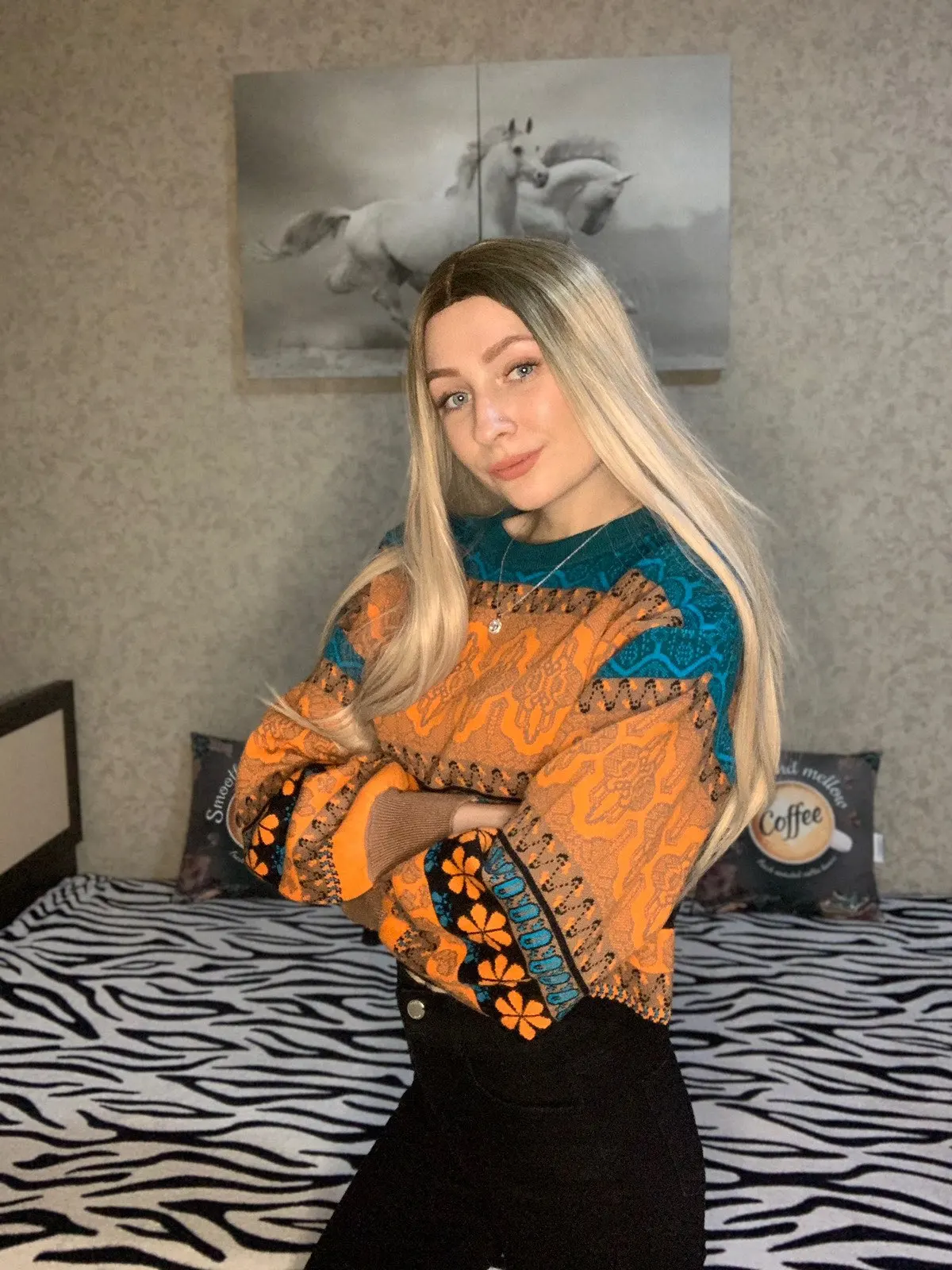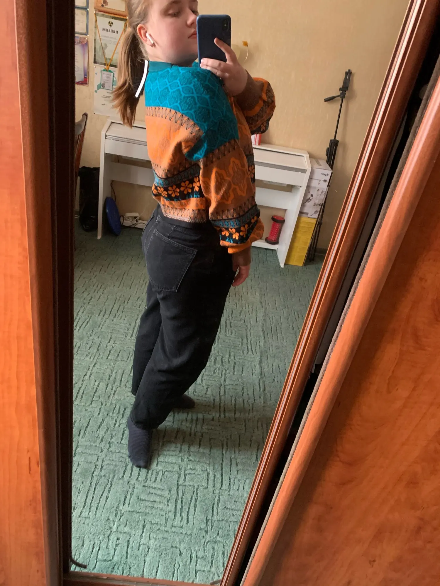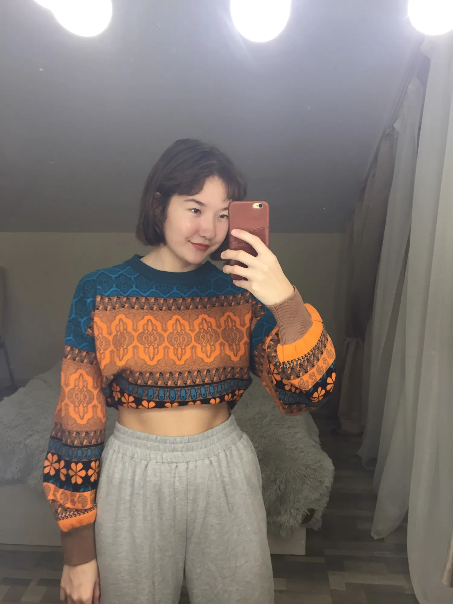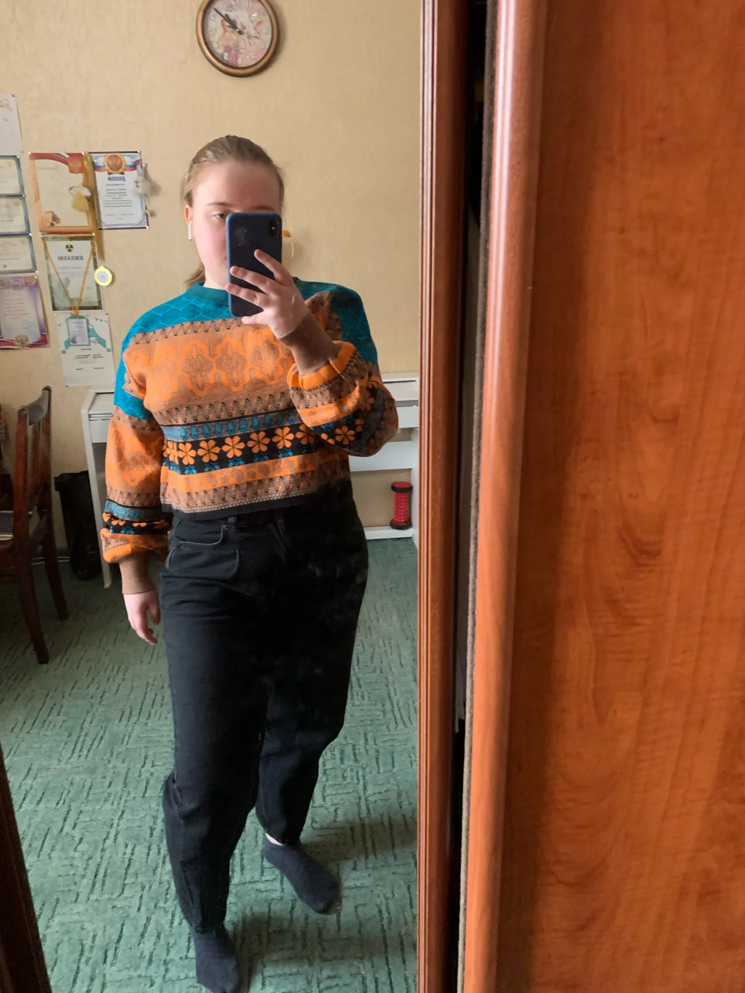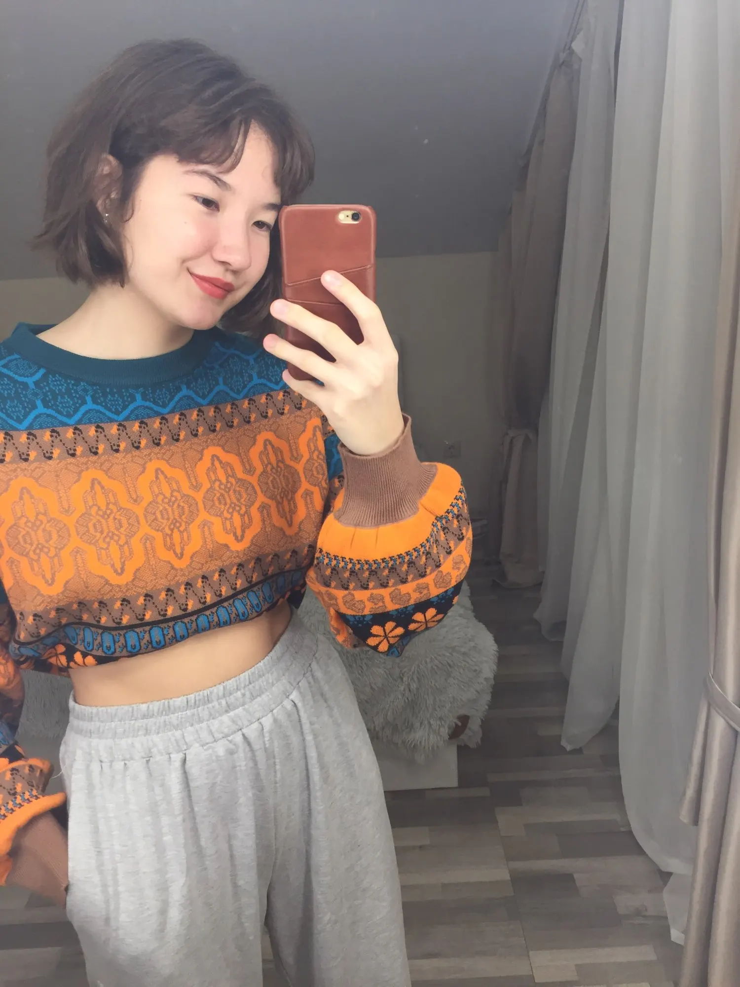 The goods came to me in two weeks, the parcel tracking until receipt. Packed in a zip bag, when unpacking an unpleasant smell was not. On its parameters 83-65-93, height 167 cm, I ordered a size M, he approached me perfectly. The size table is correct. The jacket is very warm, soft and pleasant to the touch. The coloring is very interesting. In Hindi style or retro, which I really like for a long time wanted to try on, something like that. The sweater is shortened, not prickly. The neckline is round, on the sleeves of the gum. The quality of tailoring is excellent, the seams are all stitched exactly without passes, without gaps. After washing does not shed, which is a sign that the thing is quality. Material: Polyester, wool, modal. Price now: 1547 but on sale 11.11 will cost 1281