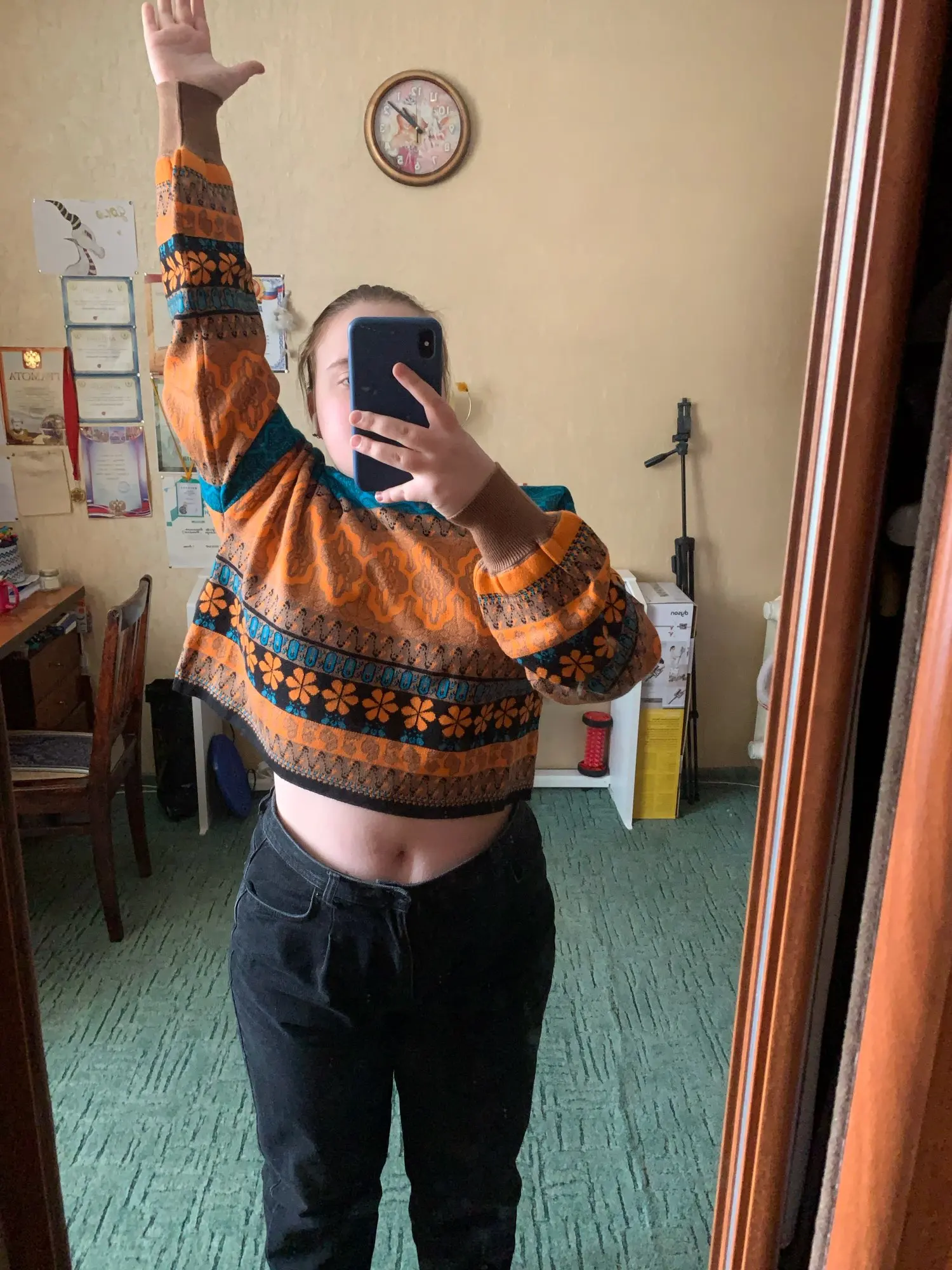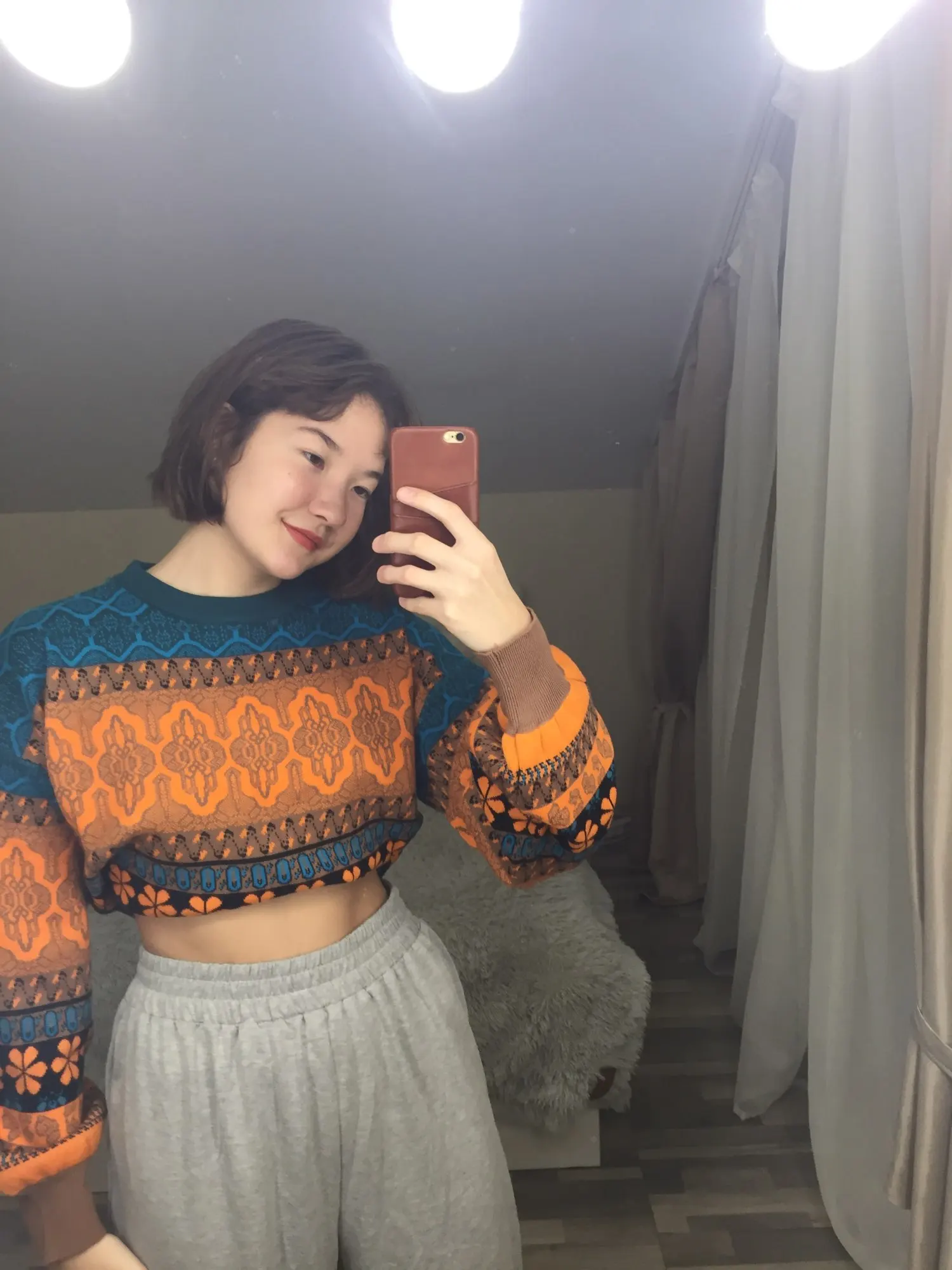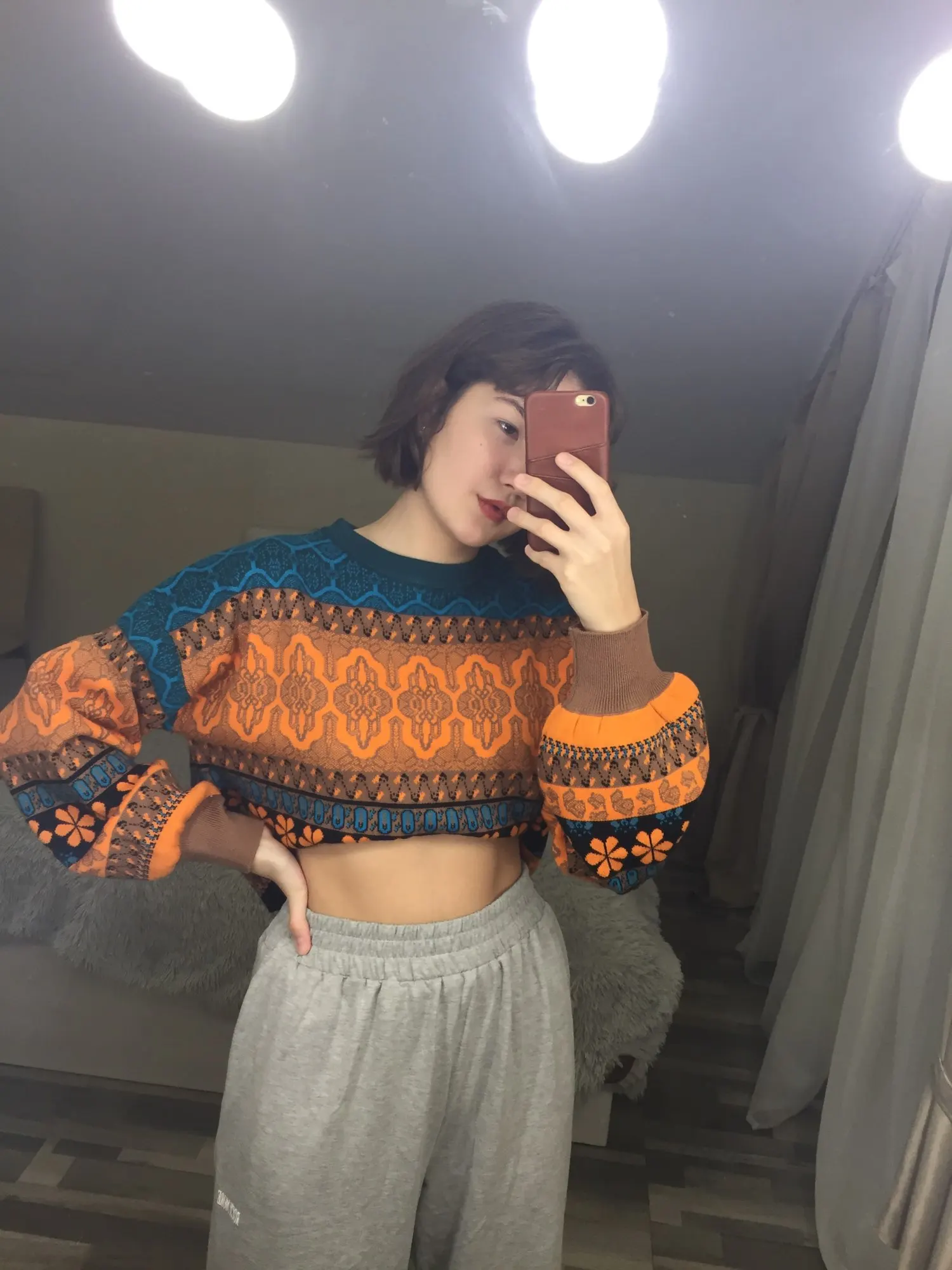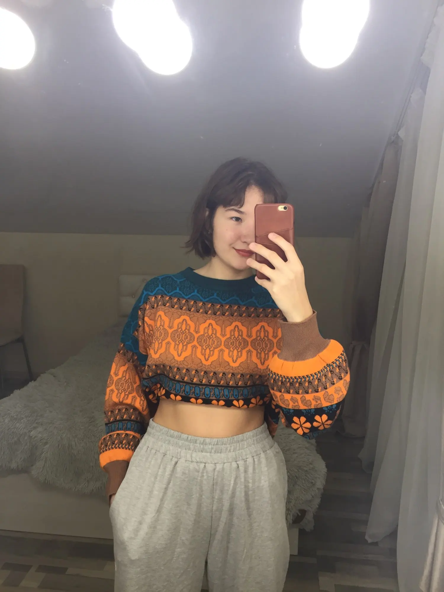 I'm delighted! Very nice sweater in an unusual style, the color is exactly like in the picture, I like everything! In fact, I can say that the sleeves are long, this is visible from the photo, and a little bit of the sweater itself is short, but I do not consider it for a minus, in this regard everything is convenient. My parameters: og-106, ot-86, took the size XL-everything is perfect