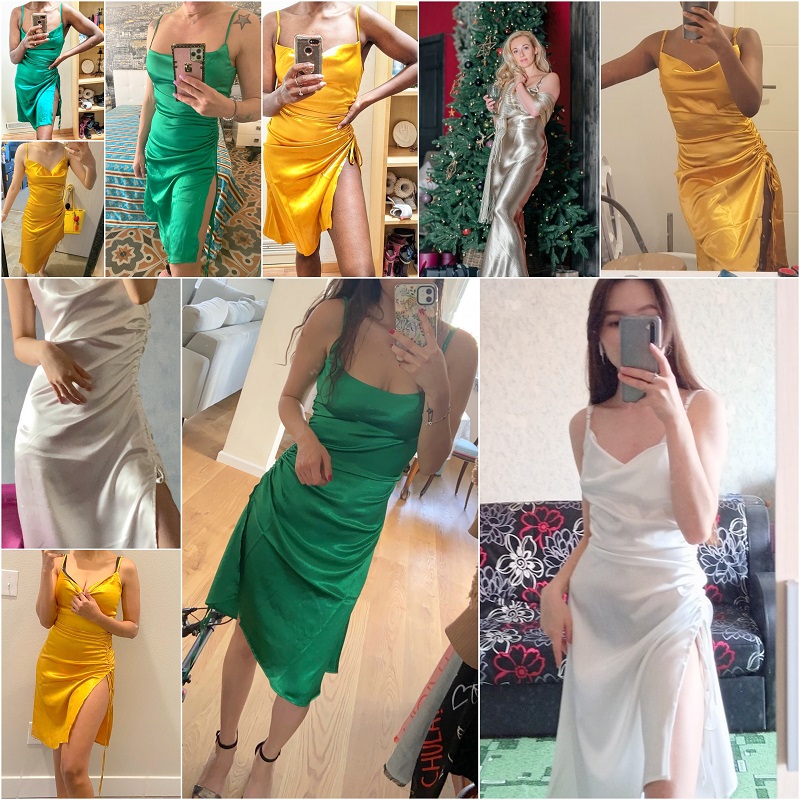 It's so flattering!!! It's beautiful silk, last picture is with flash you can see how beautiful it'd look on a night out. I got a size small I'm 5ft 2 and it was a little long for my liking but it's an elegant dress I'd wear to a formal event for sure.