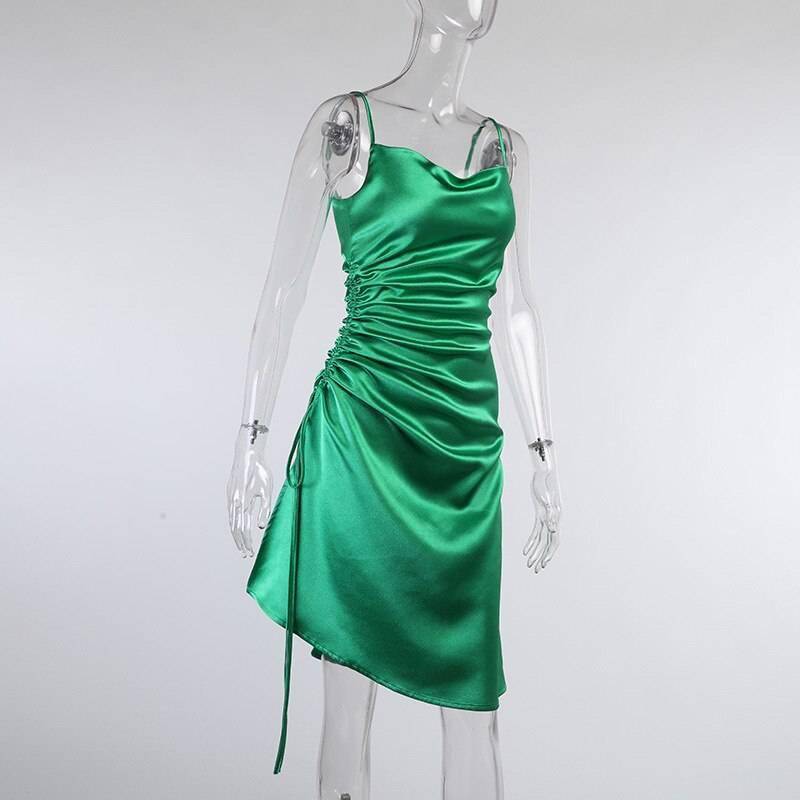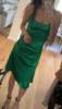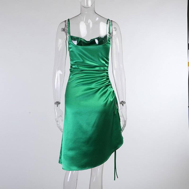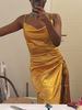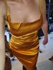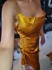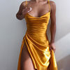 Women Satin Dress Side Split Solid Elegant Evening Dresses OUT0865