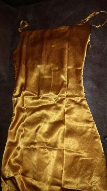 A little fluttering neckline... I'll have to punch or sew something. I had to give up a little while I figured out how to make it better. The tummy emphasizes, so it is best to wear over a pulling body. In general, I'm happy. The dress is good to wear on an official holiday, either in the club.