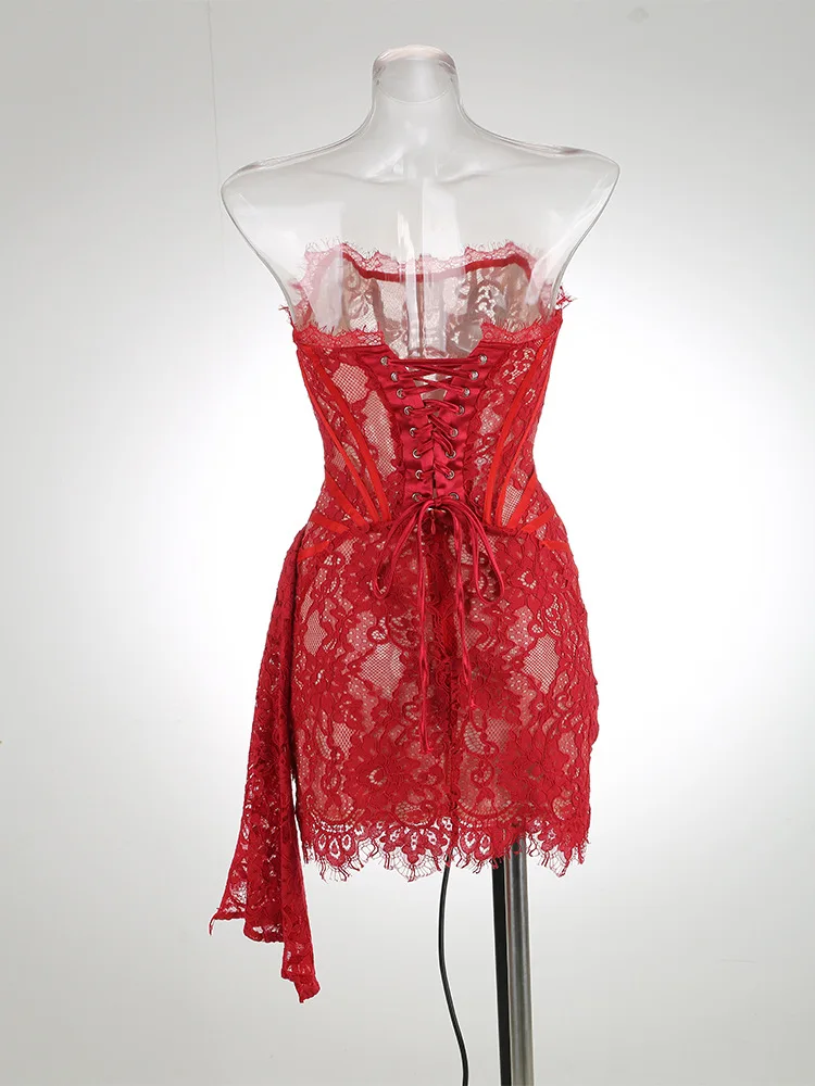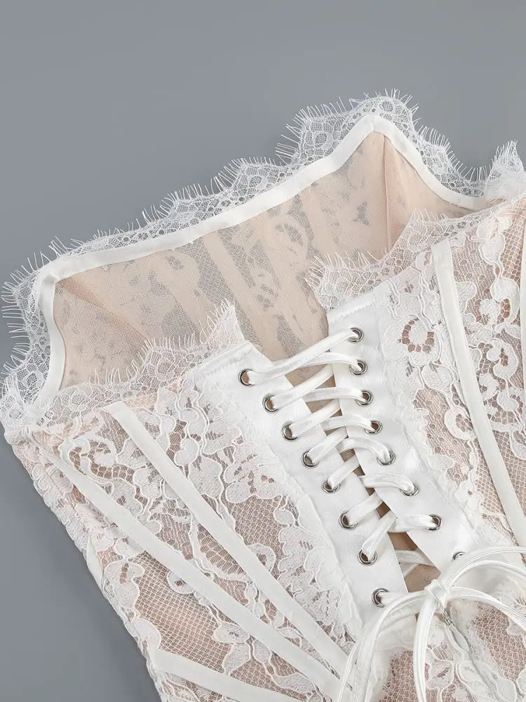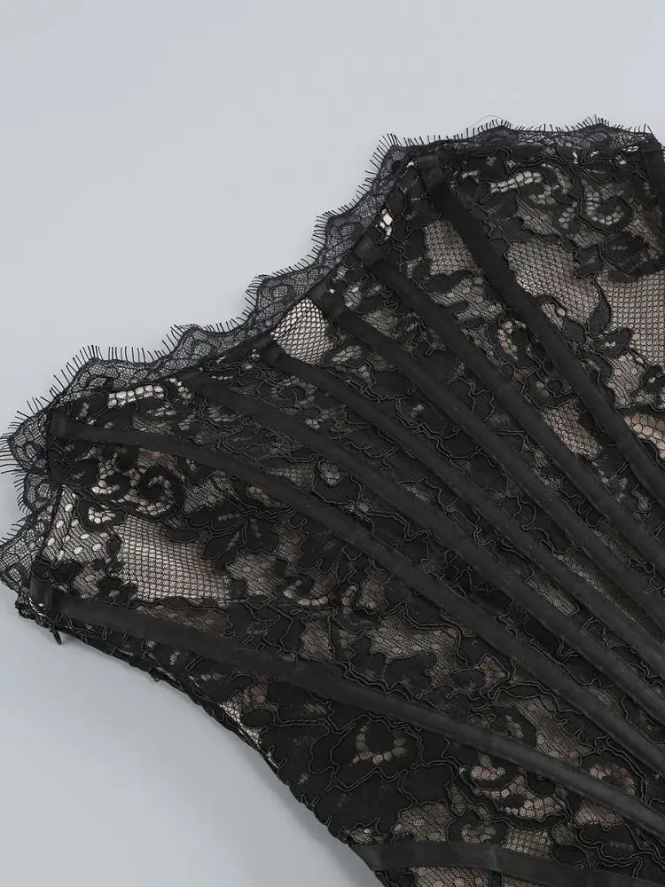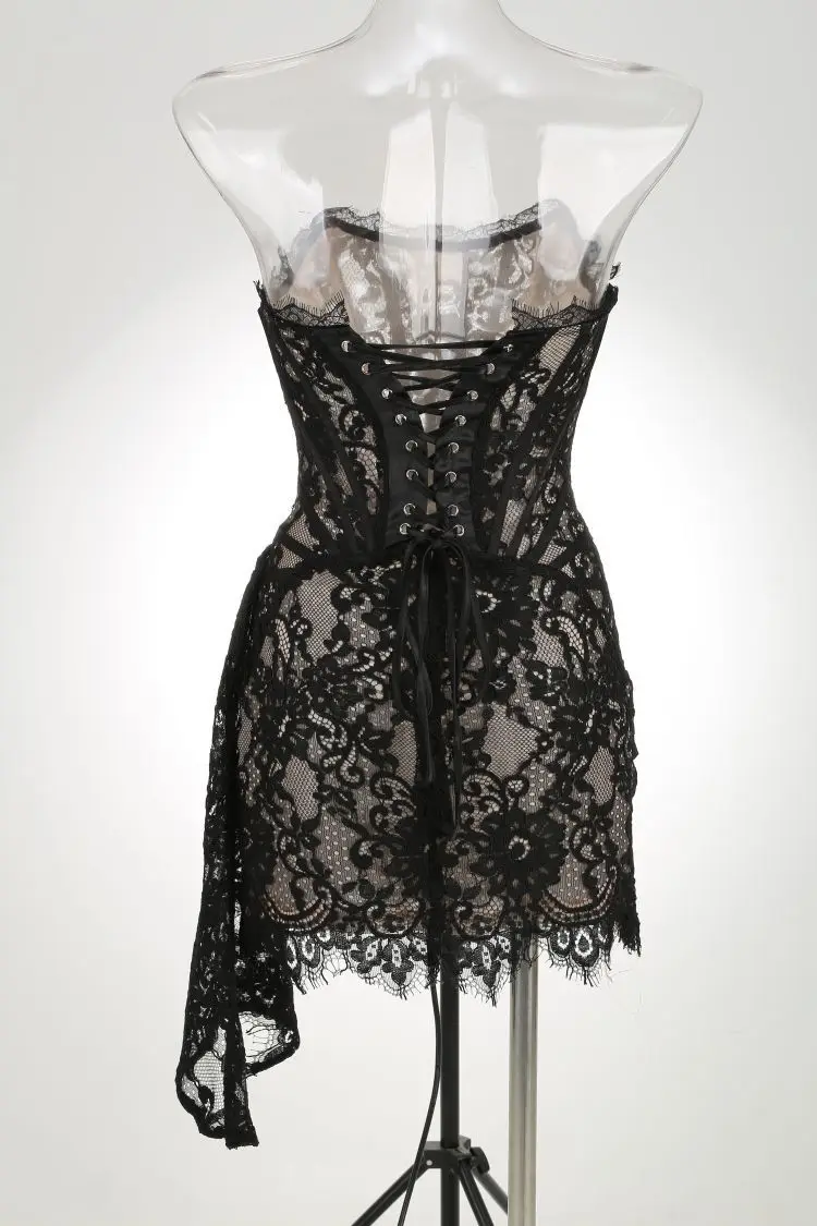 Women Sexy Lace Corset Mini Dress Gothic Sheer Boned Bodycon Lingerie Inspired Party Dress OUT1032