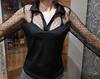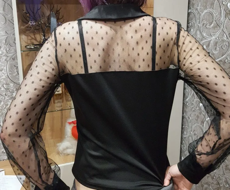 Women Sexy V Neck Spring Sheer Long Sleeve Polka Dot Blouse