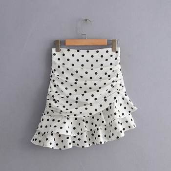 Pleated Asymmetrical Skirt Polka Dot Print Ruffles Mini Skirts OG0704