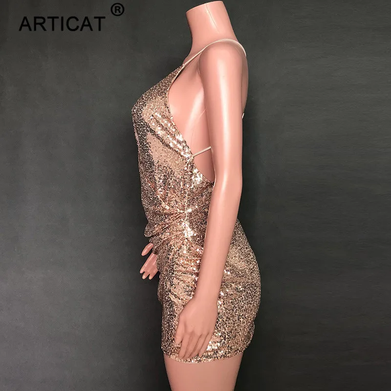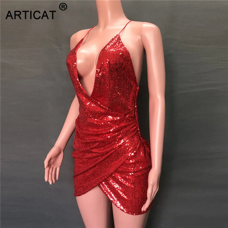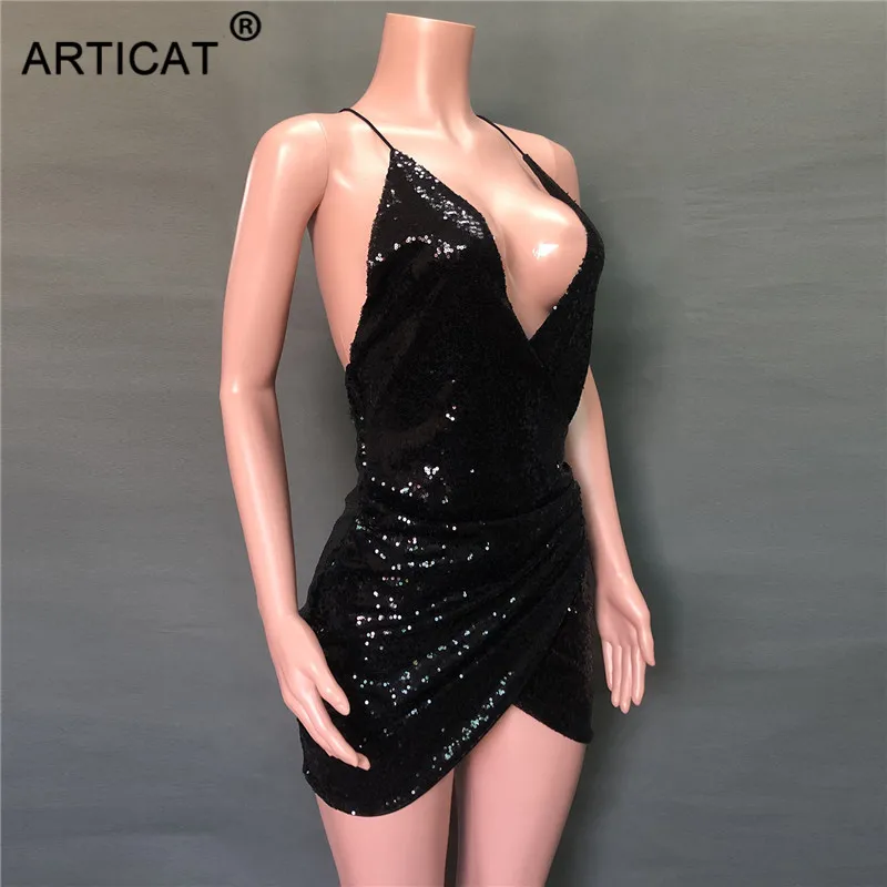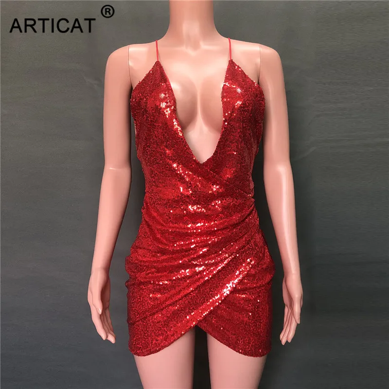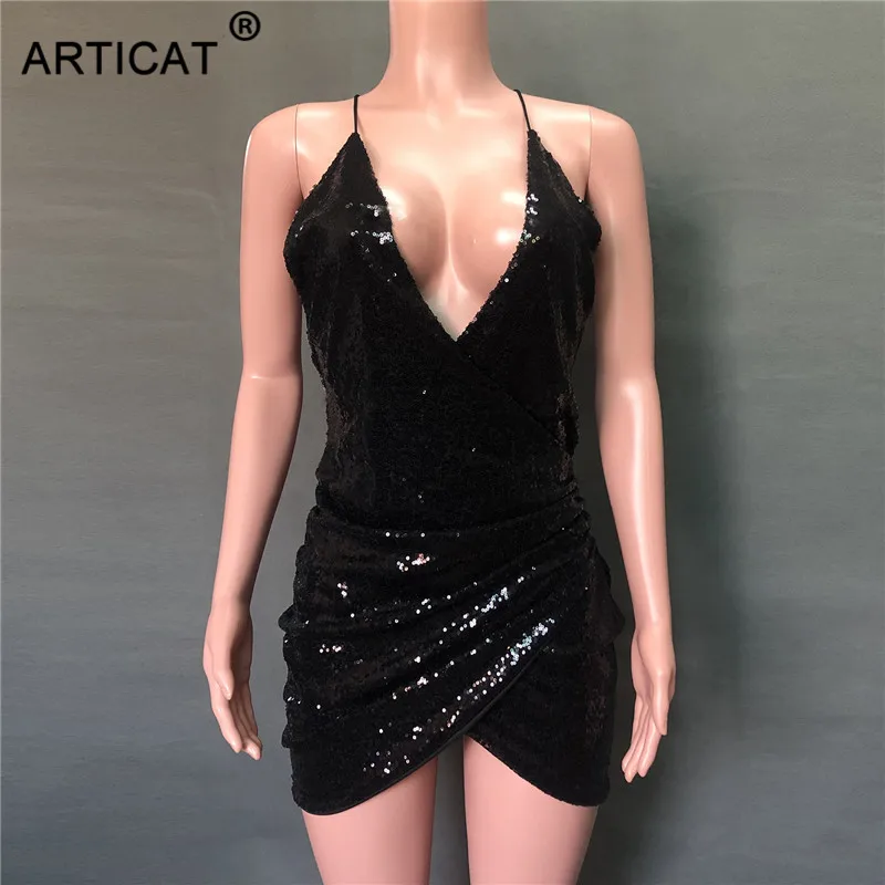 Women Solid Golden Bodycon Winter Christmas Dress Deep V Neck Sexy Sequin Dress Elegant Black Club Party Dress Vestidos L0103