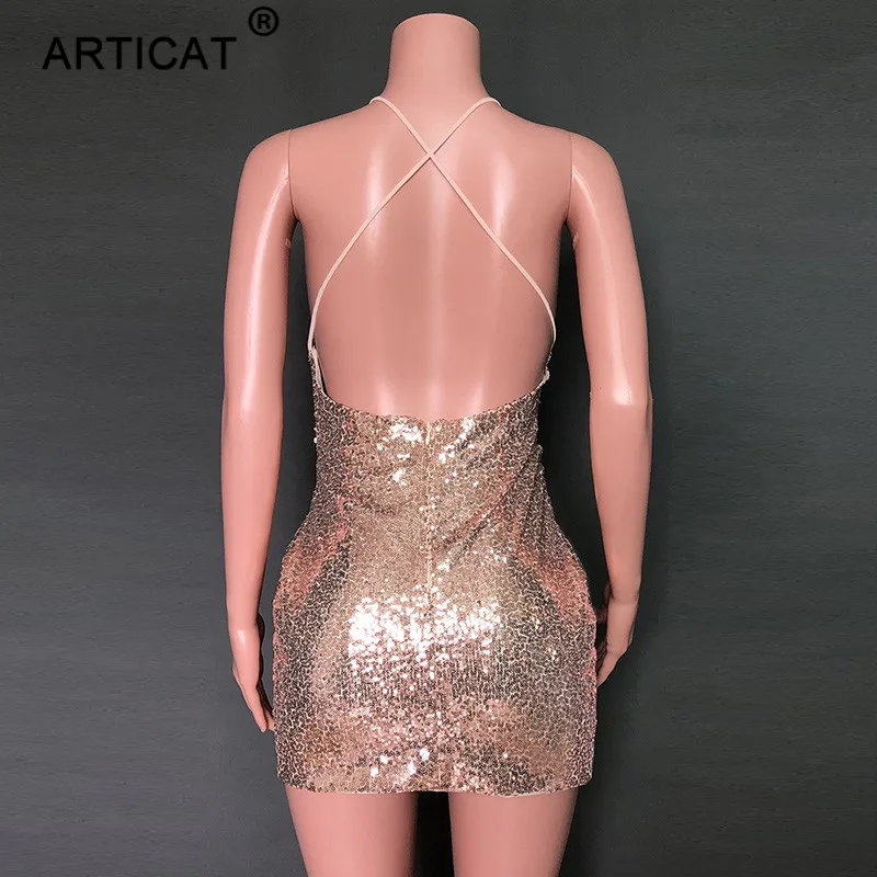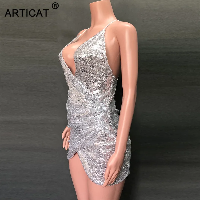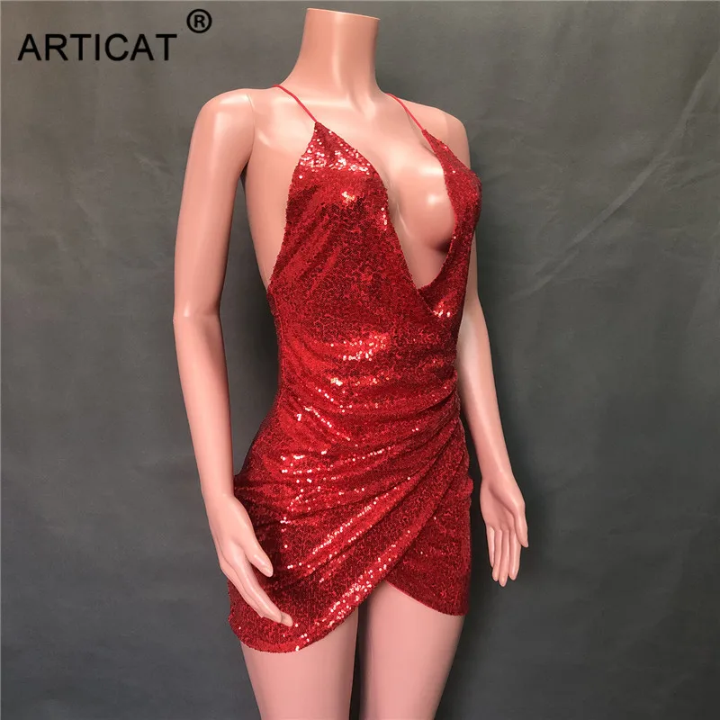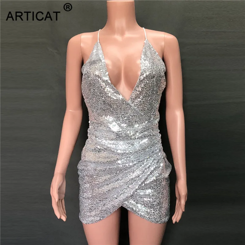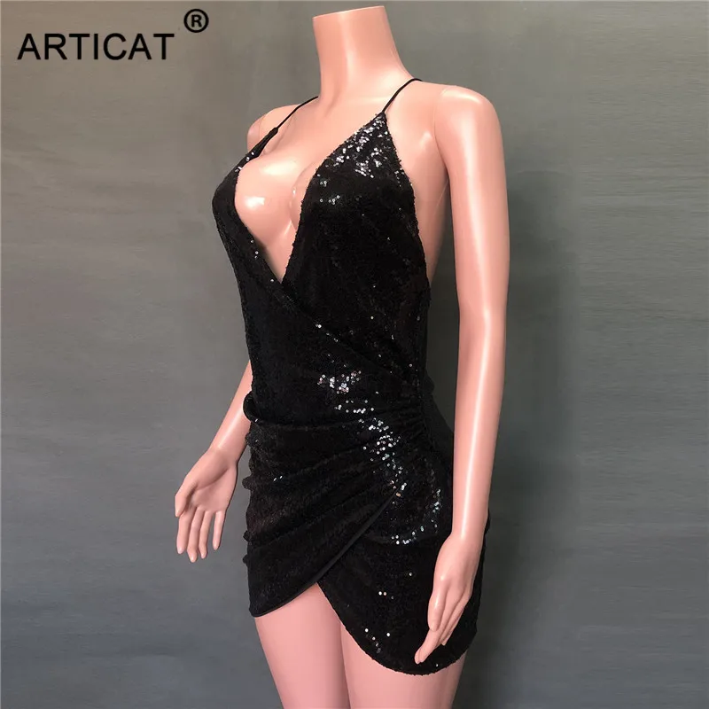 Women Solid Golden Bodycon Winter Christmas Dress Deep V Neck Sexy Sequin Dress Elegant Black Club Party Dress Vestidos L0103