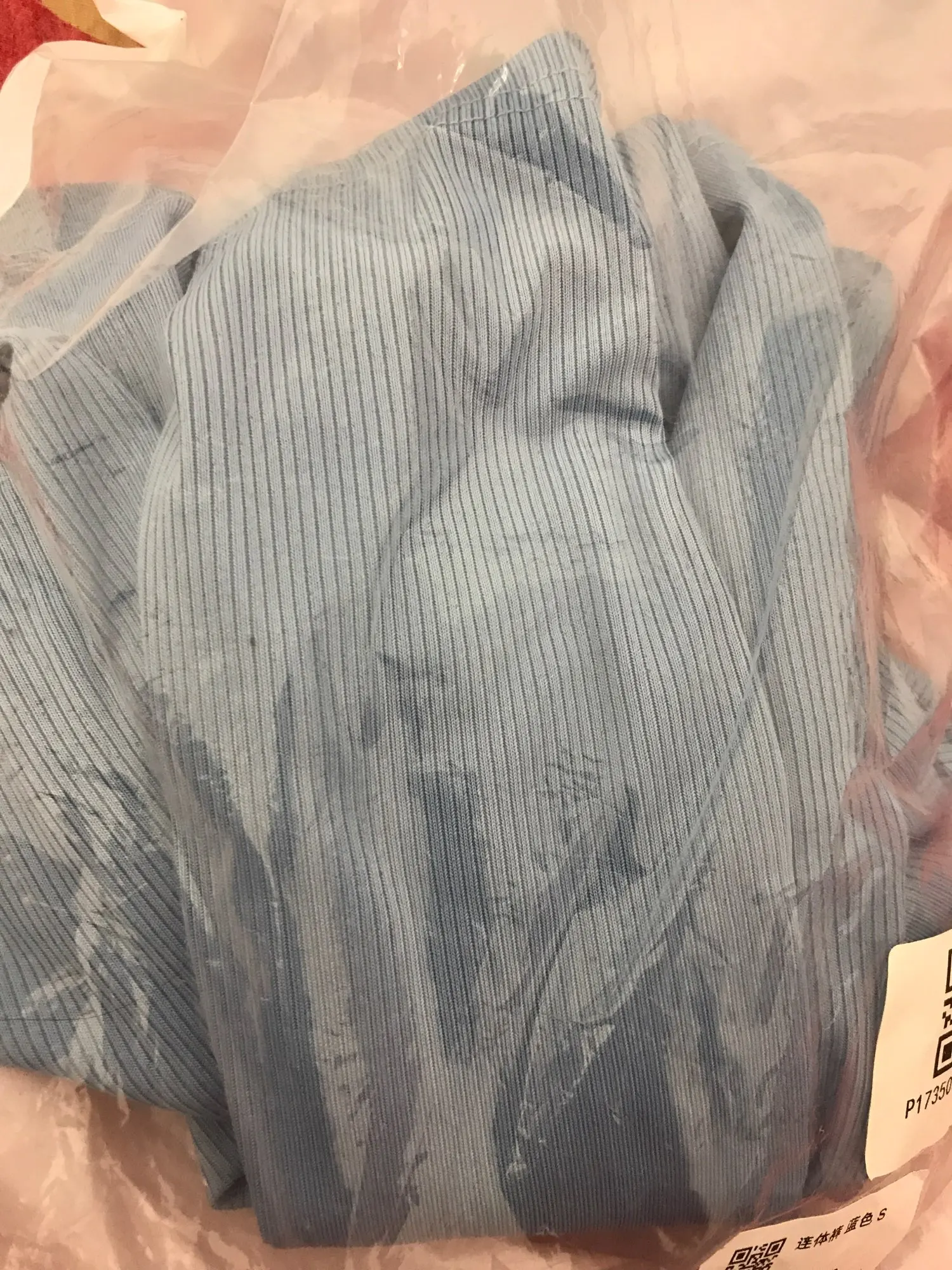 Colour is the same and the material is ribbed and stretchy at the same time