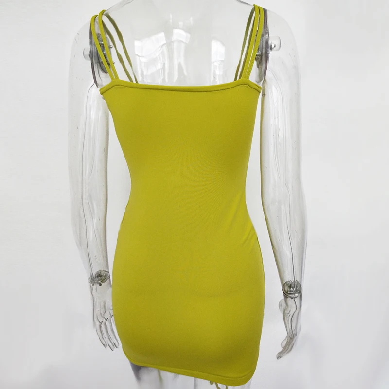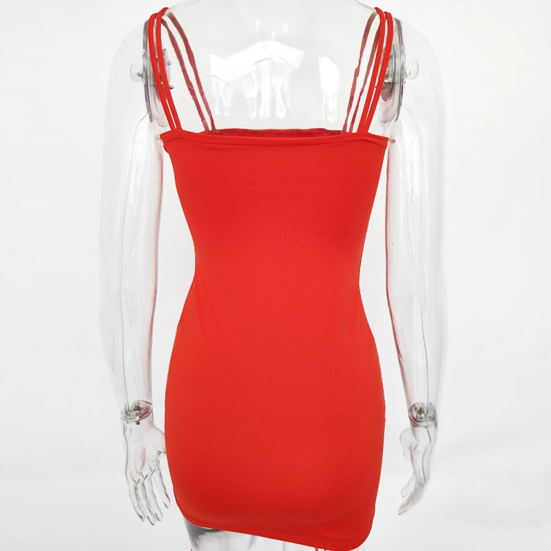 Women Spaghetti Strap Backless Bodycon Bandage Party Dresses Vestidos Club Mini Dress L0101
