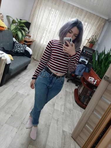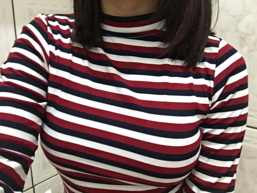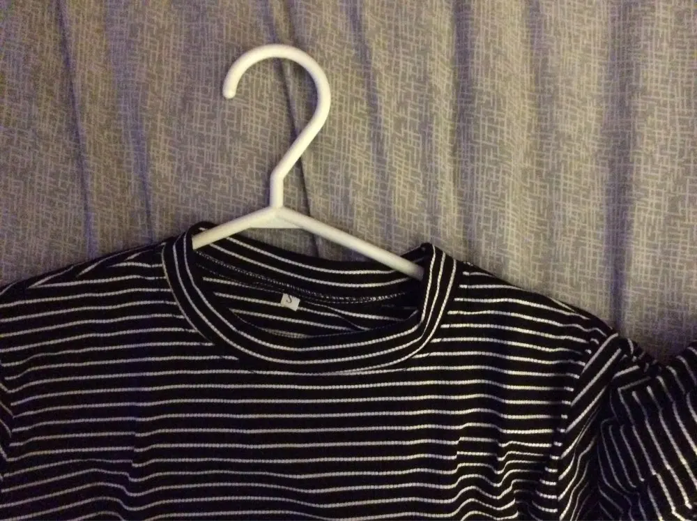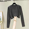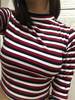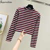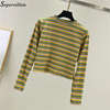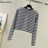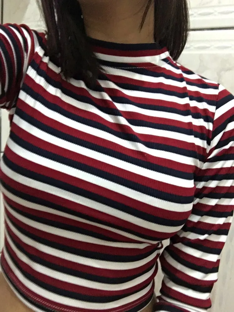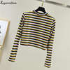 Women Striped Crop Top Long Sleeve T Shirt Knitted Streetwear L0133