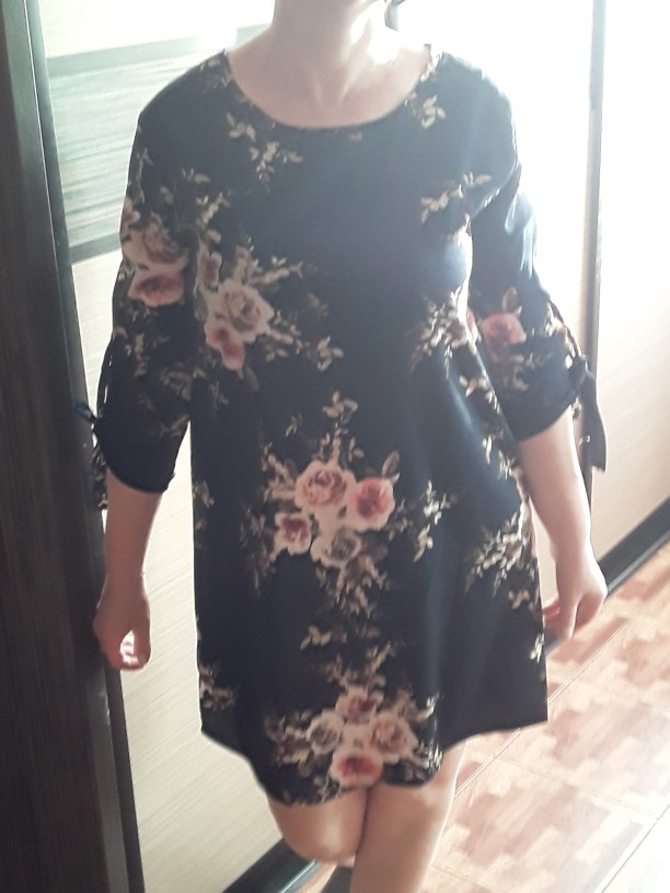 READ first....this is the second dress I've ordered, first one was the navy dress, recieved several complements, i love it so ordered another, second one was the black, it seems much thinner and completely see through blue didnt fit when I first bought, more like a shirt, I'm losing weight and can now wear it as a dress. I'm 5'3 178lbs