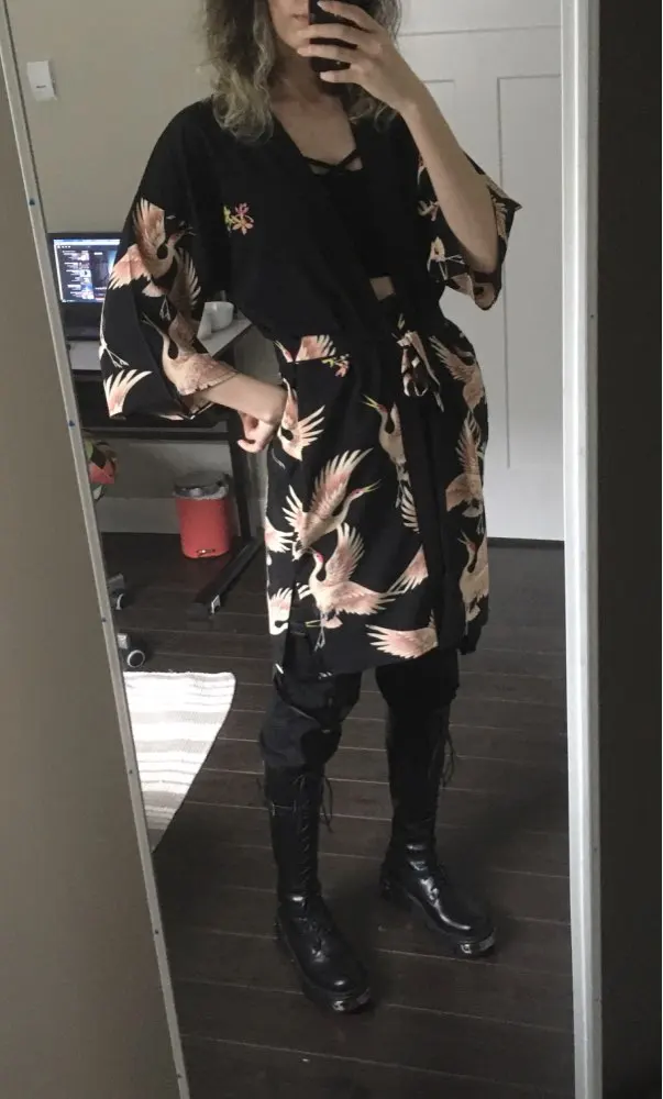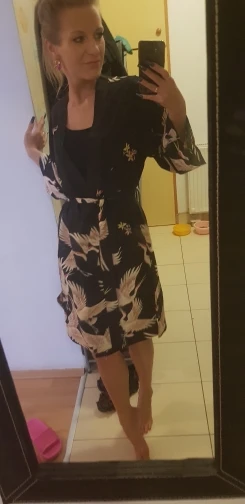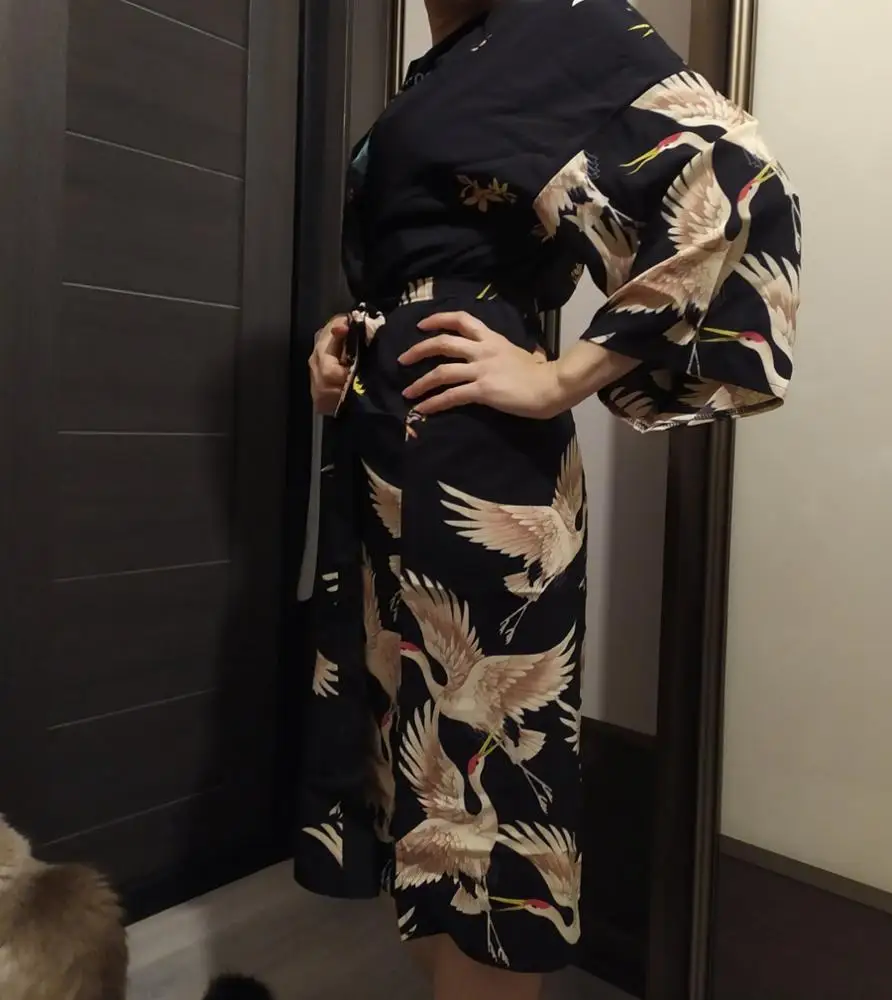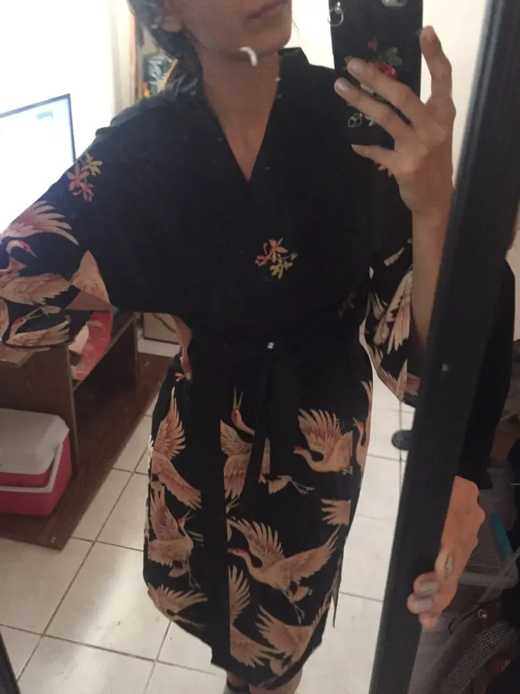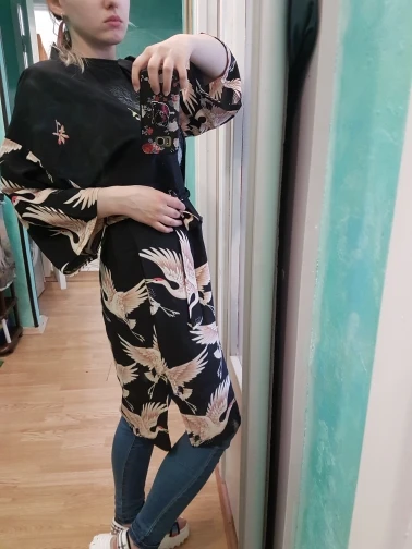 I liked it very much! And it came quickly! For the summer, a great thing. My height 156 therefore kimono just below the knees and the quality is not bad