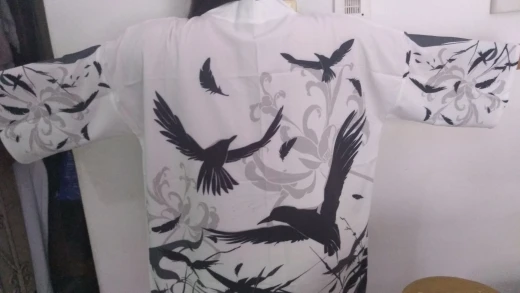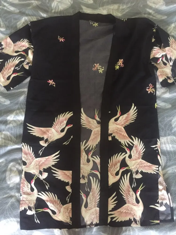 Excellent kimono, the print is clear, the seams are good, the threads do not stick out anywhere. The fabric, of course, is full of synthetics, but on the T-shirt/T-shirt evening to throw quite comfortable. Delivery is very fast