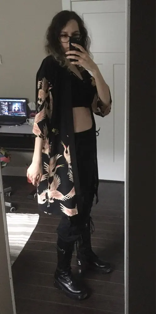 I am really satisfied with how this kimono turned out. I have ordered two of them and both came in perfect state. The belts for the kimonos were different, tho. One with the same printing as the kimono, the other with clear black belt, both are looking good and are okay, so I do not take it as a minus. The material of the kimono is also very good. It is not heavy, but also not too light and see-through. In general it is a really comfortable material and I couldn't be happier. The kimono also came very quickly. The lenght is good too, I have 170cm and it ends right above my knees.